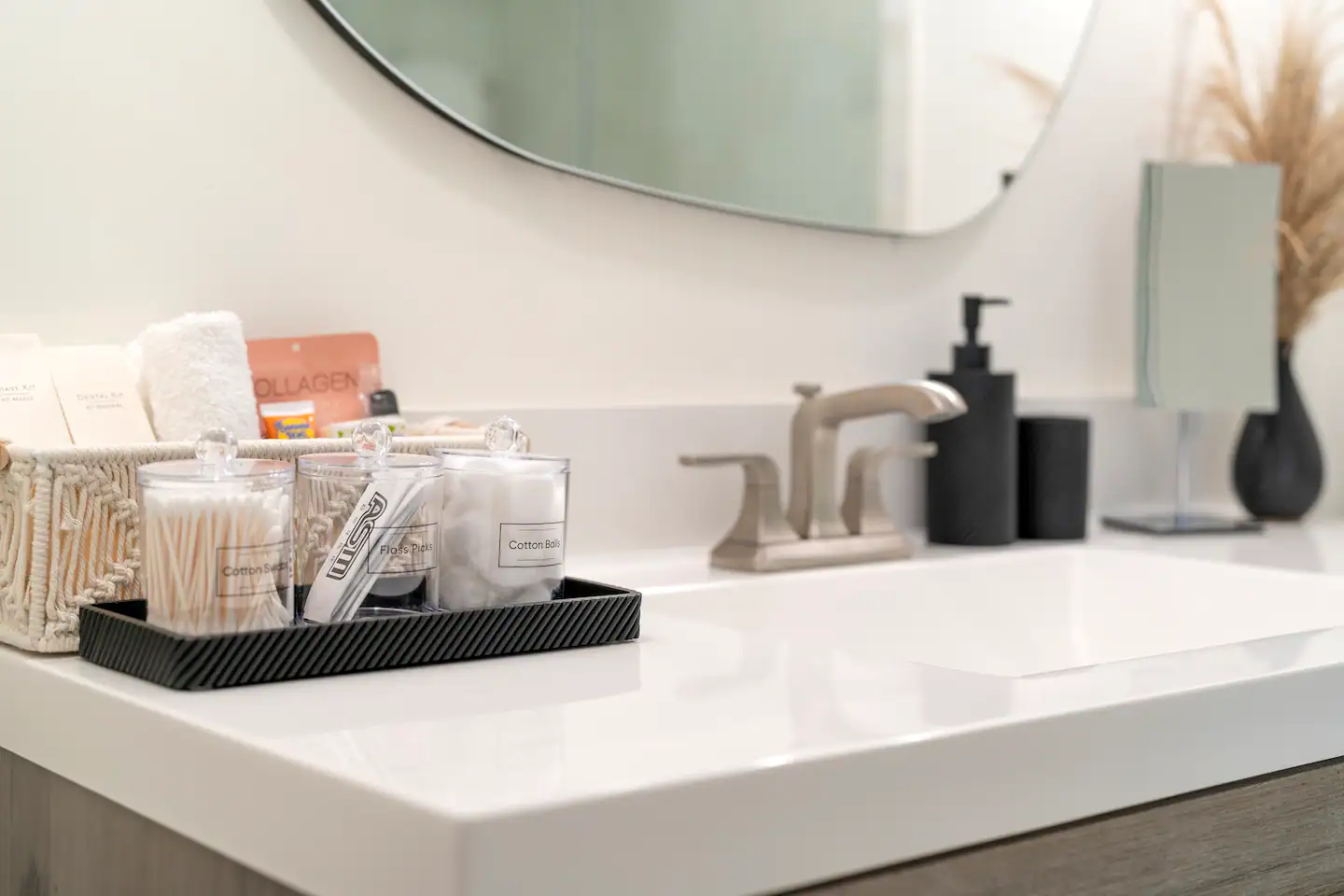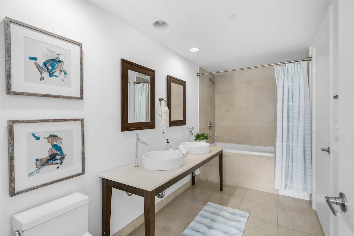 And let’s talk bedrooms – they’re plush, comfy, and perfect for crashing after a day of Miami fun. Each bathroom comes stocked with all the goodies, so you can pack light.