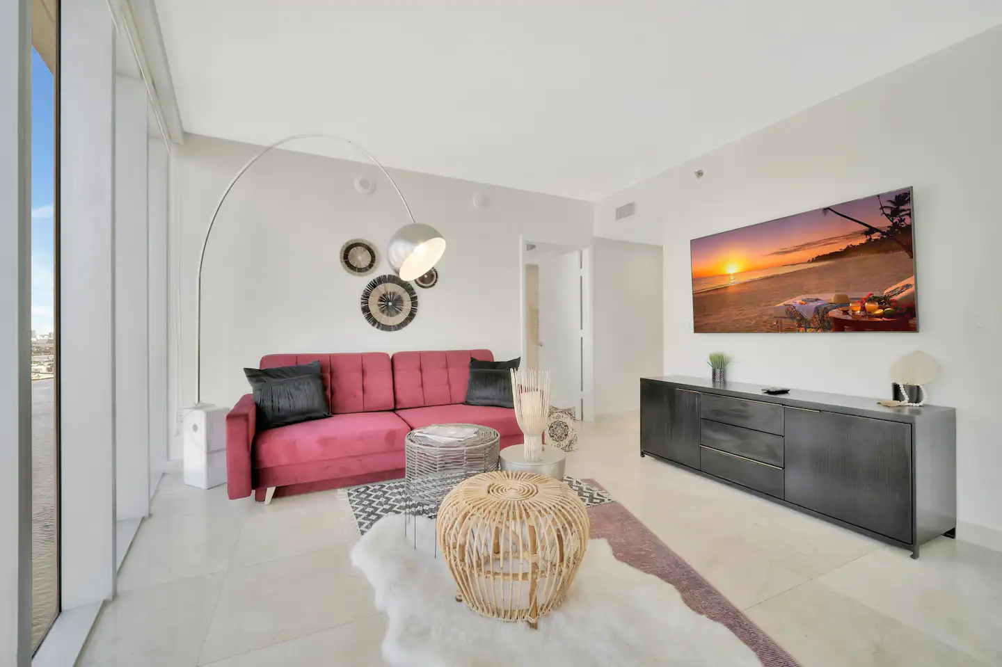 This Airbnb Miami Luxe suite in South Beach is all about bringing that chic, contemporary Miami vibe. When you walk in, those floor-to-ceiling windows reveal epic beach views, making every second feel like a scene from a movie.