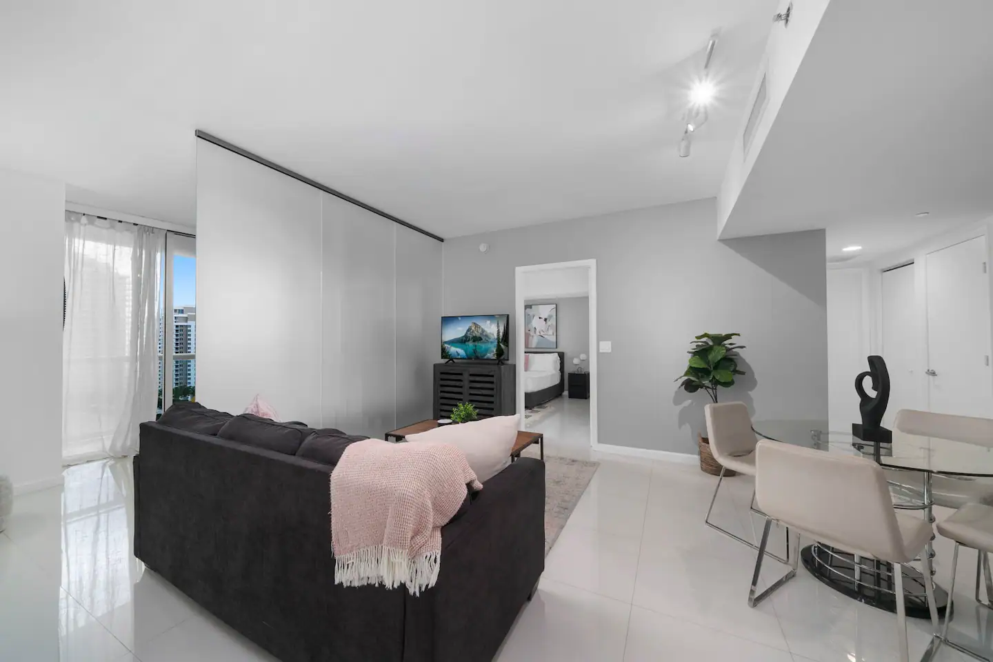 Sitting pretty on the 19th floor in the pulsating heart of Miami’s Brickell district, this Airbnb Miami Brickell apartment is a total game-changer for families, couples, or biz whizzes. It’s like your sky-high sanctuary where the city’s heartbeat syncs with your own.
