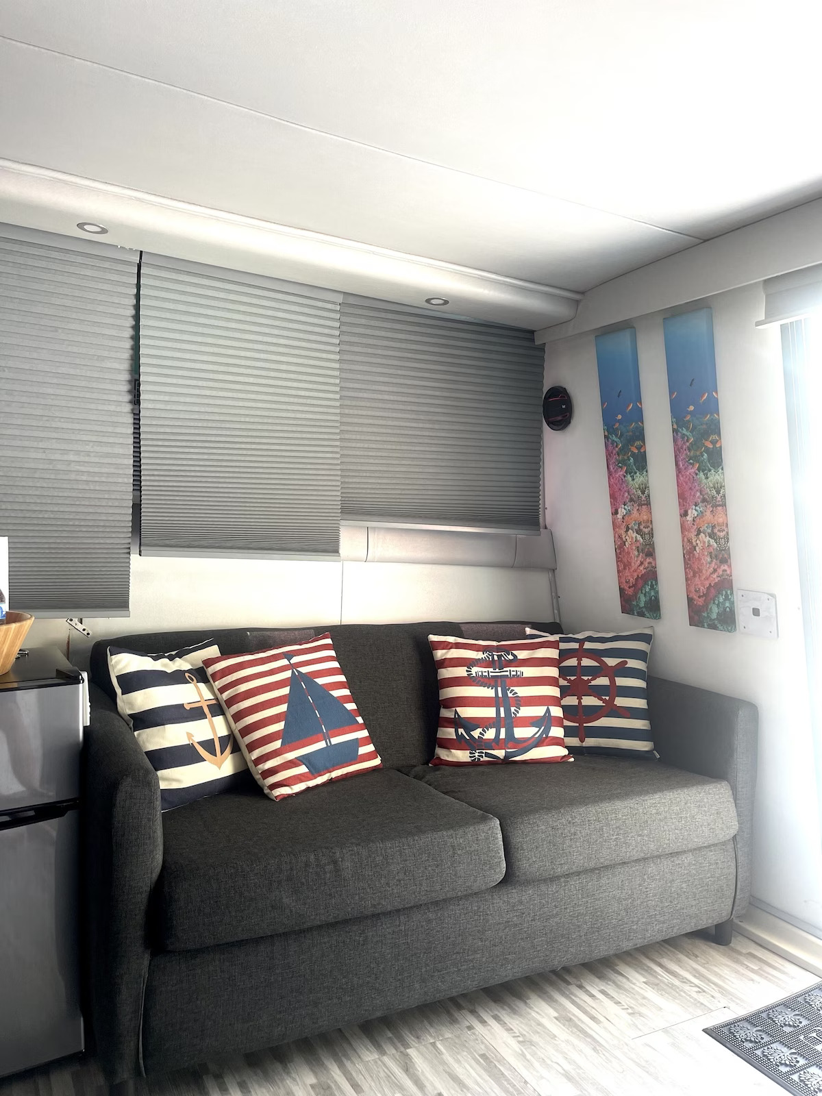 Wake up to the sea gently rocking you in a snug bedroom with a full-size bed. Need more zzz space? The living area transforms into a sofa bed. Stay entertained and connected with free WiFi and flat-screen TVs.