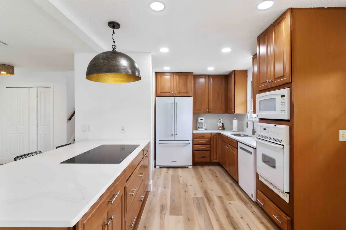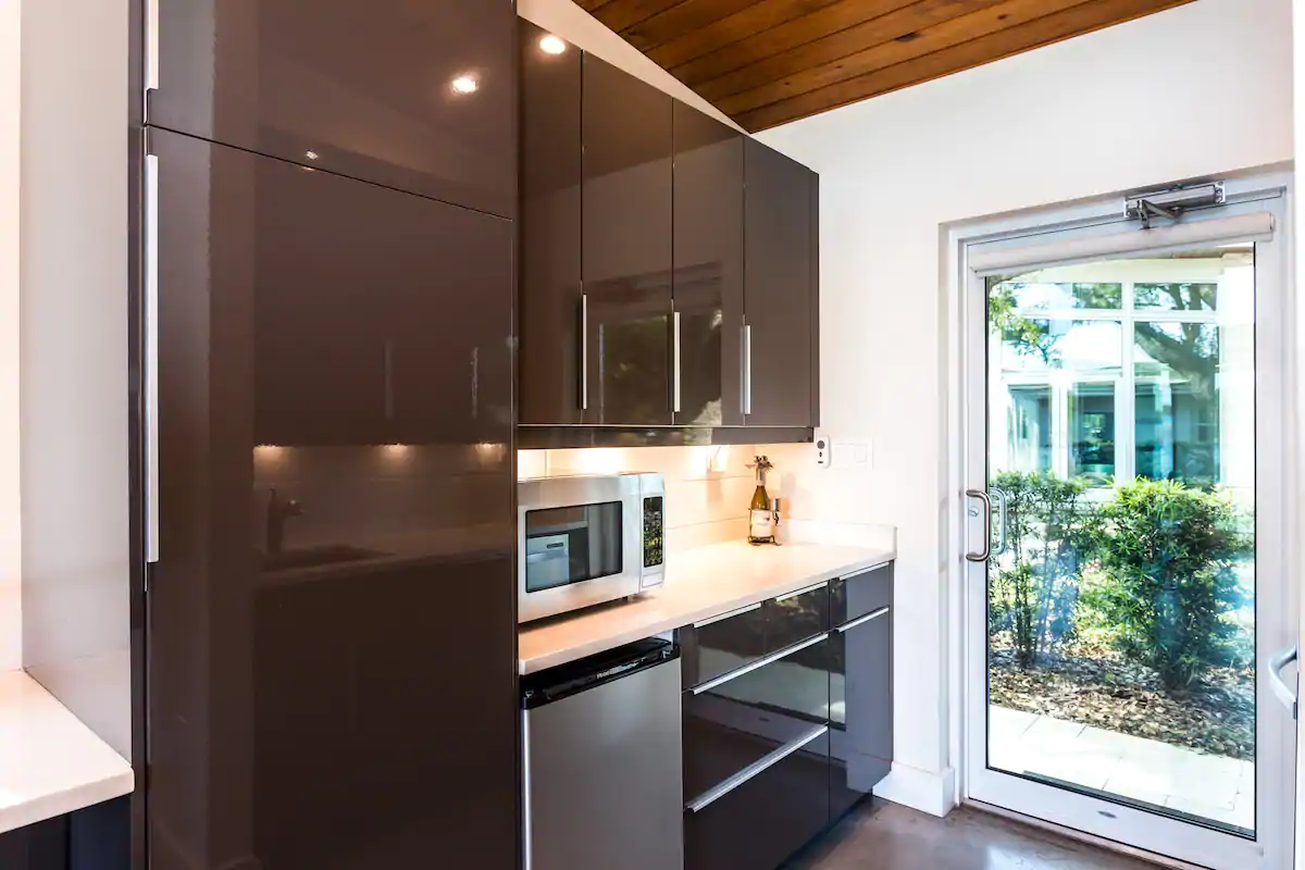 The kitchenette’s stocked for your inner Masterchef USA, and with local coffee shop shoutouts like “Foxtail” and “Cups and Pups” just a drive away, your morning brew is sorted. Plus, with dedicated parking behind a privacy fence, this spot keeps it all about ease and access.