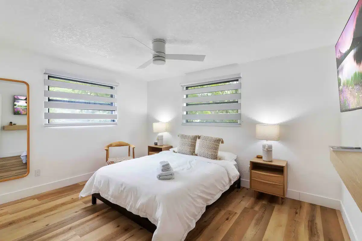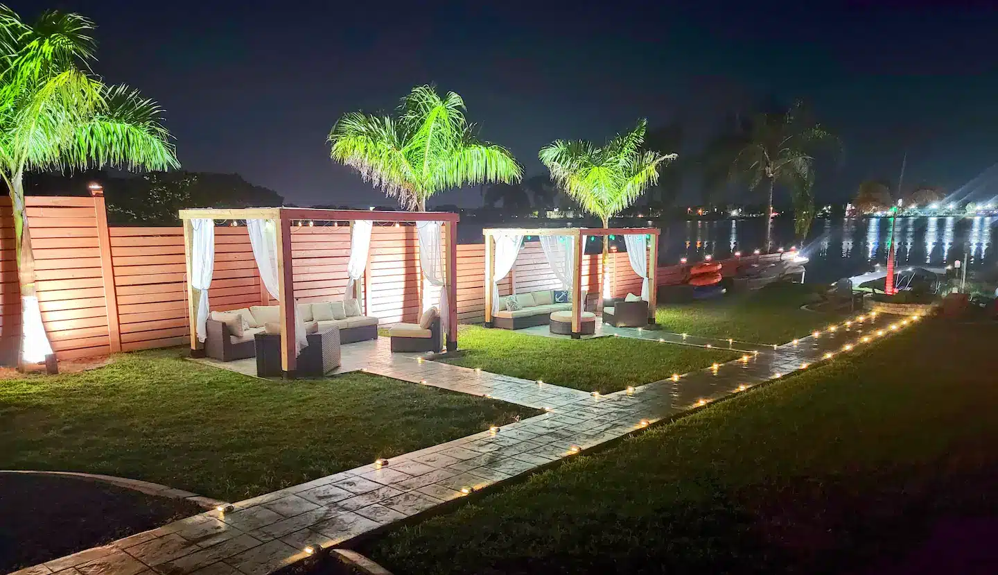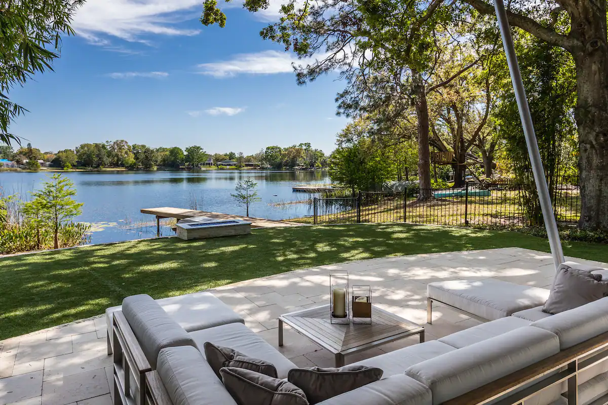 The space is fresh, it’s spacious, it’s modern. The beds are extremely comfortable, the location is perfect, and you’ll be able to enjoy the private lake front property with a tropical backyard with sand to rest your feet in. Custom VIP cabanas to help celebrate an occasion. The home offers an entire backyard commercial sound system allowing you to get your vibe anyway you like. Centrally located home, a short distance from the airport, Downtown, Amway Center, UCF, Convention center.