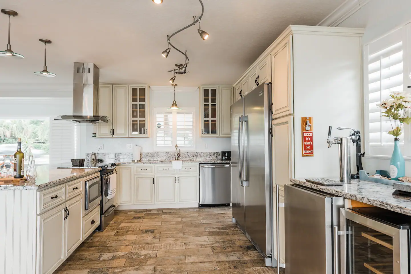 This pad is smack-dab in the middle of everything cool in Orlando – a hop, skip, and a jump away from the airport, Downtown vibes, the Amway Center buzz, UCF energy, and the Convention Center hustle. But the real MVP here is the private lakefront offering. Enjoy bass-filled fishing escapades, speakeasy discoveries, paddle board adventures, and yard games that’ll keep your entire stay poppin’. And with lit backyard lighting and a property-wide Wi-Fi network, you’re always just a click away from sharing those enviable moments.
