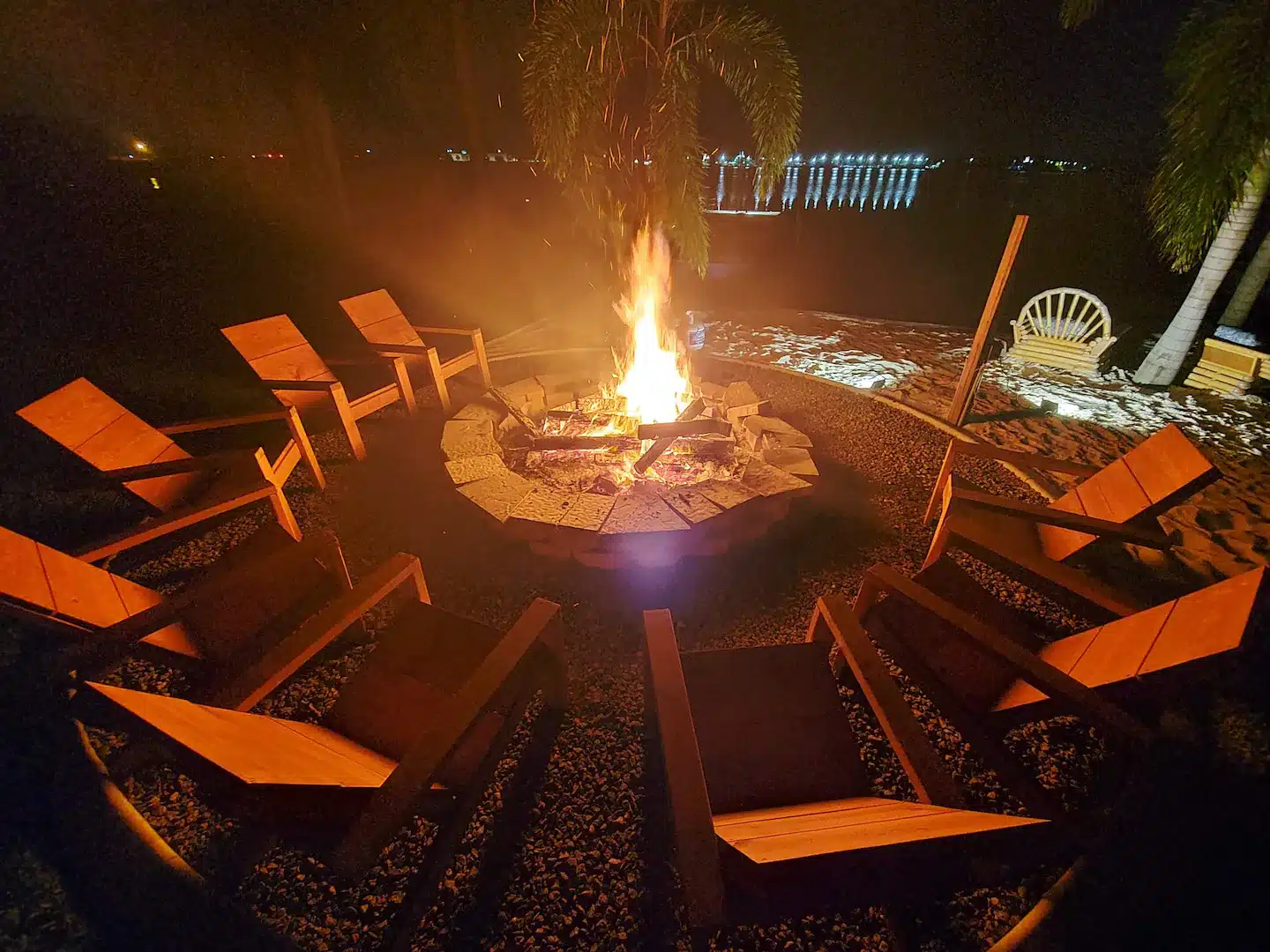 This residence offers a comfortable and spacious environment that’s both modern and inviting. With beds praised for their comfort and a location that’s described as perfect, guests have access to a private lake front property featuring a tropical backyard with sand, custom VIP cabanas, a comprehensive backyard sound system, and a variety of water-related activities including a hot tub, fishing, paddle boards, and kayaks.