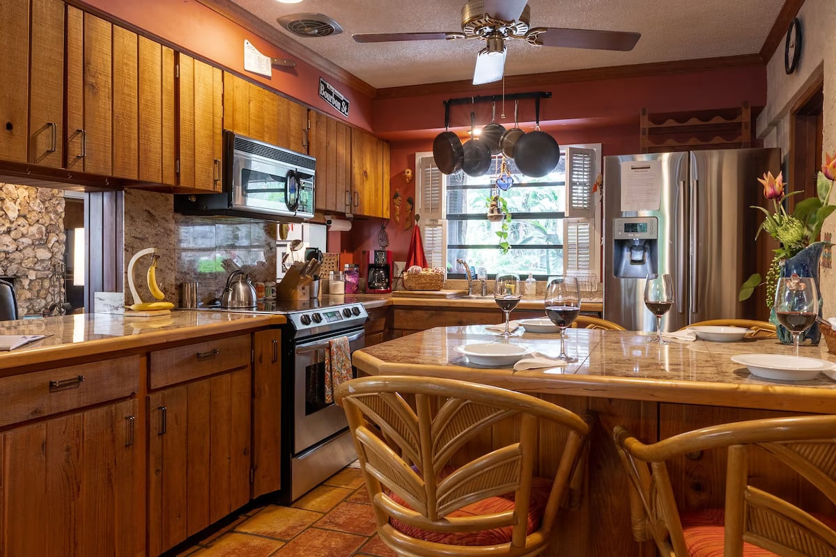 Guest reviews consistently highlight the home’s unique charm, combining a peaceful retreat with close proximity to Orlando’s famous attractions. The option to order homemade pies, the breathtaking natural views, and thoughtful amenities like high-speed internet and outdoor activities contribute to the listing’s appeal.