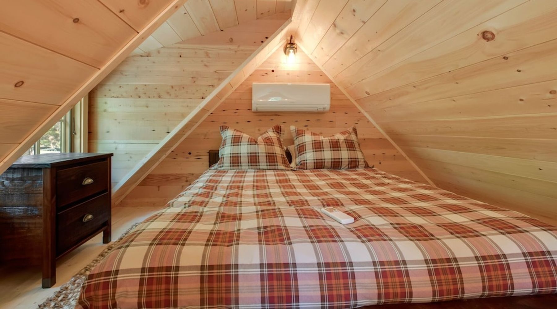 The Treehouse is equipped with radiant heat flooring and a propane fireplace for the winter and air conditioning for the summer! With two bedrooms and one bathroom, you will find romance, privacy, and charm, all nestled in the woods near Mount Sunapee and Lake Sunapee.
