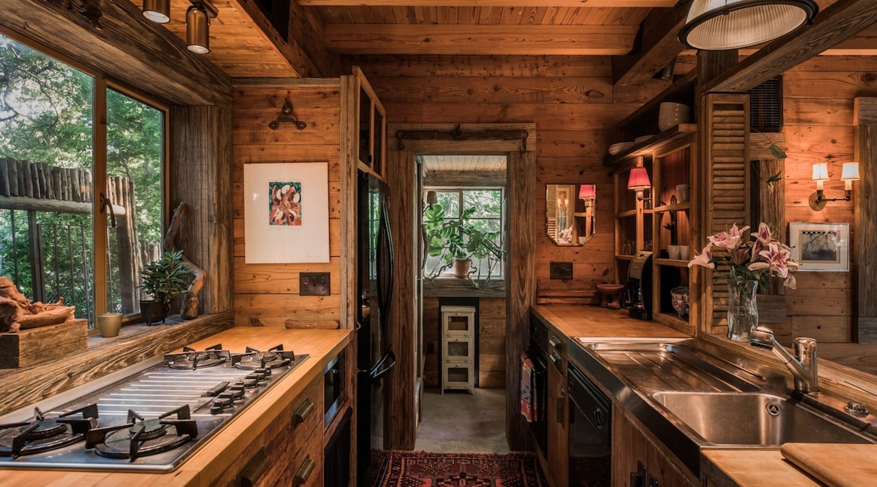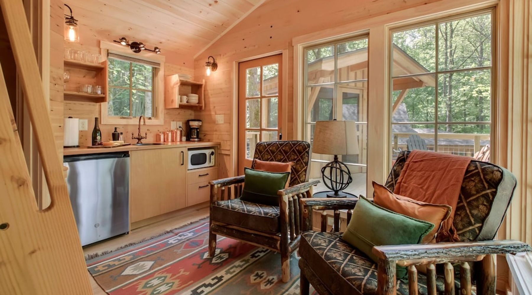 A four-season TREEHOUSE packed with all the modern amenities! An experience to remember with exquisite craftsmanship throughout, enjoy the unique features yet simple pleasures of life in the trees!
