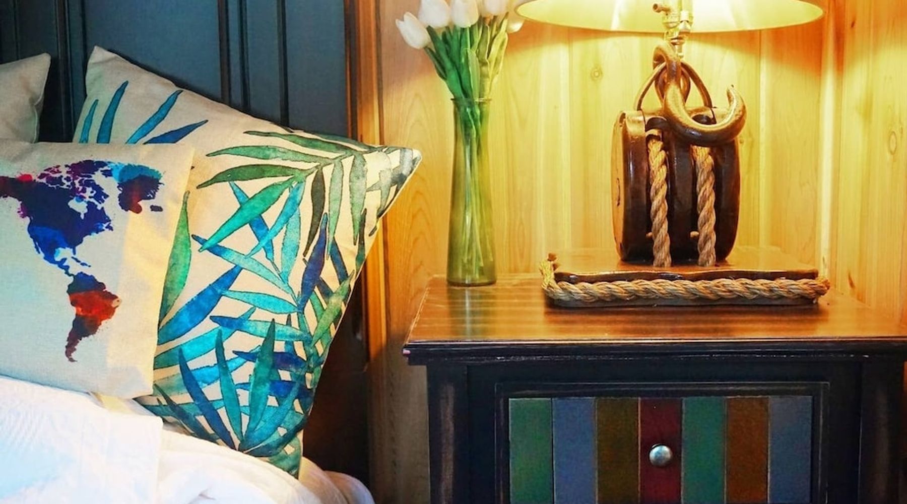 There are many little details like the cleat handles, the ship’s wheel, and the toy parrot that add to the shipwrecked feel.