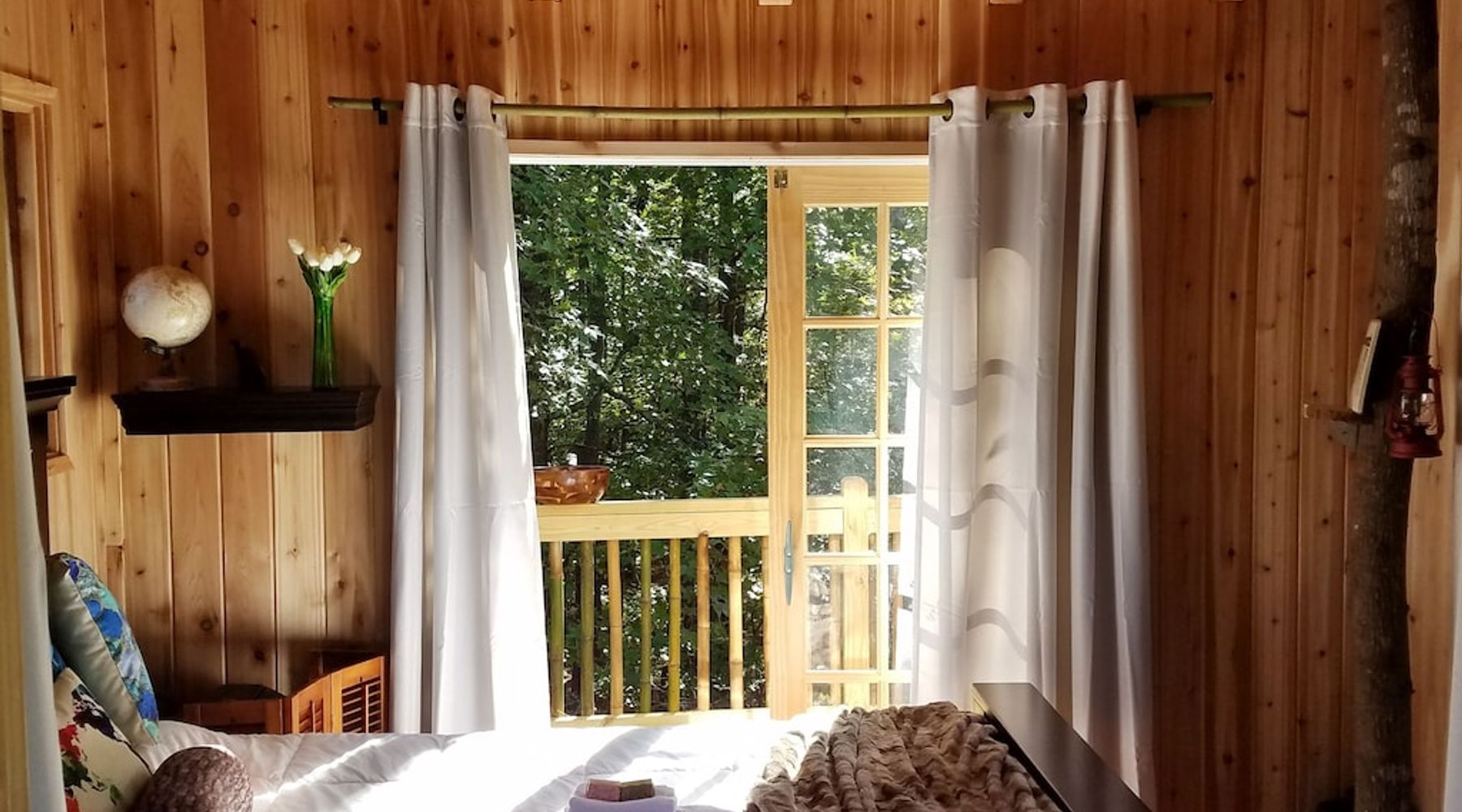 We absolutely loved our stay at the treehouse! Everything was clean, well-organized, and thoughtful. The views were amazing in the morning, and the location was easy to find. My favorite thing about the treehouse was all of the pretty decorative lights around it.