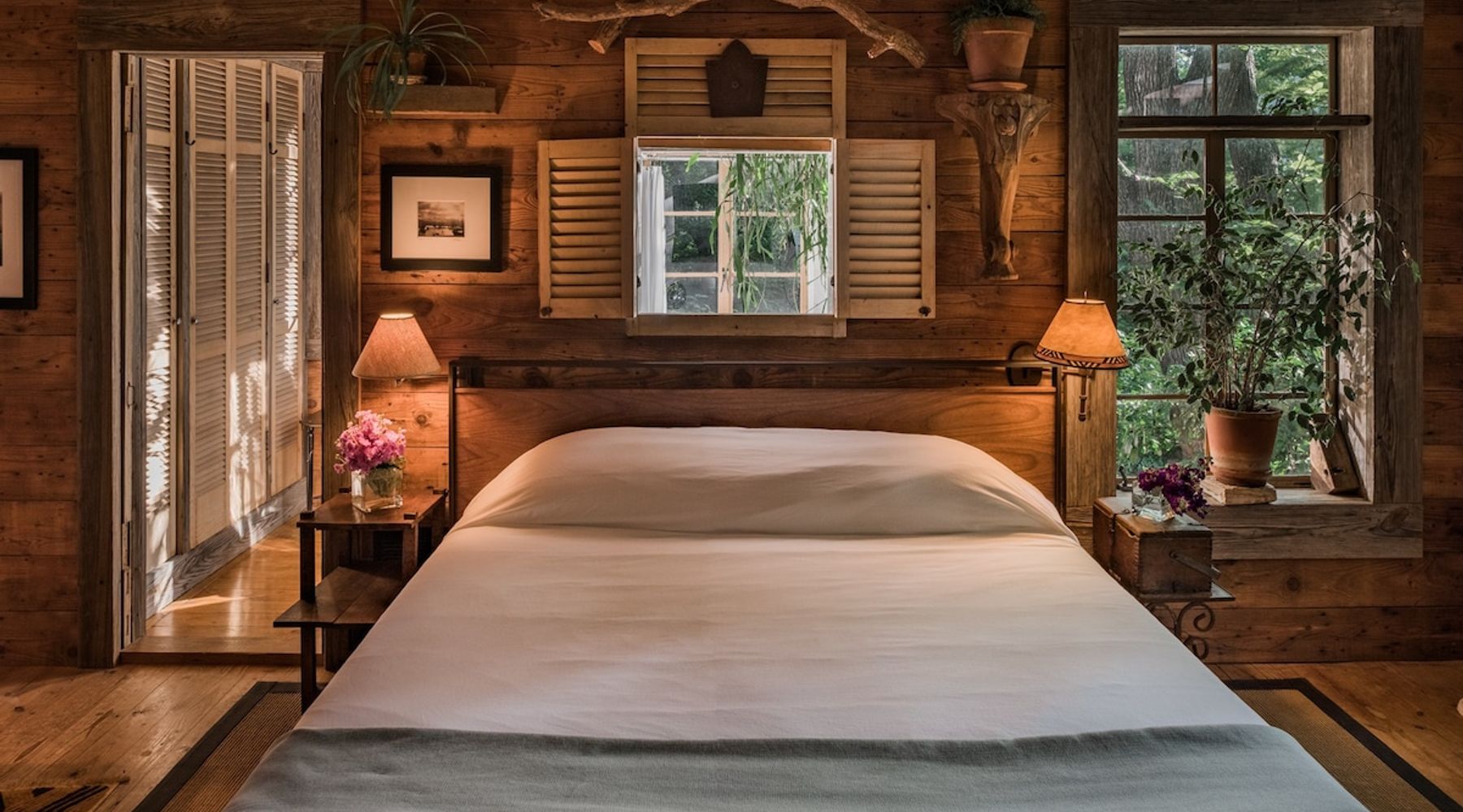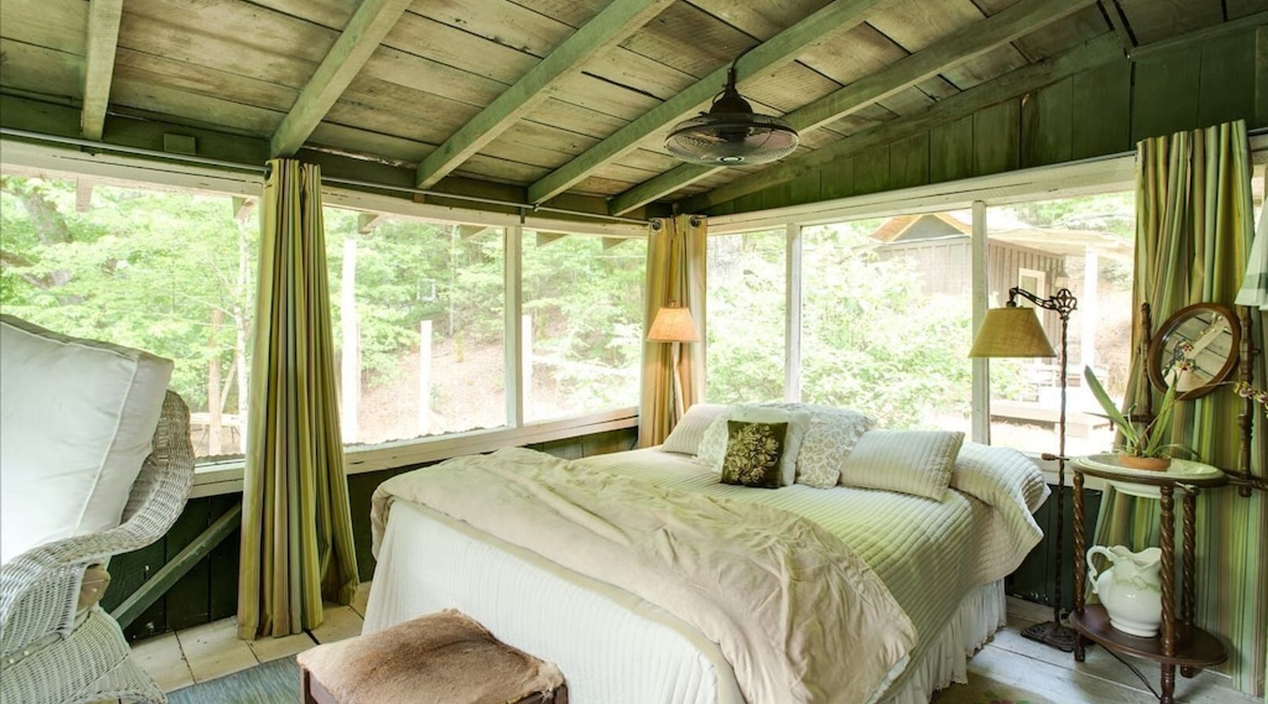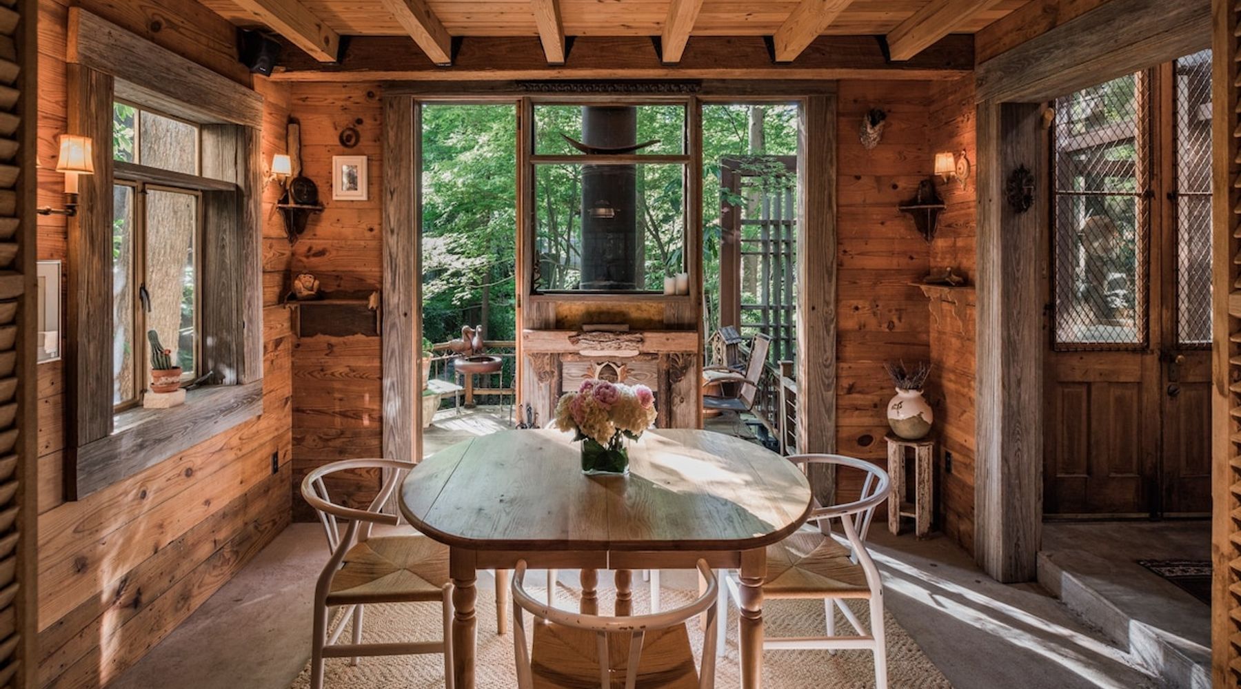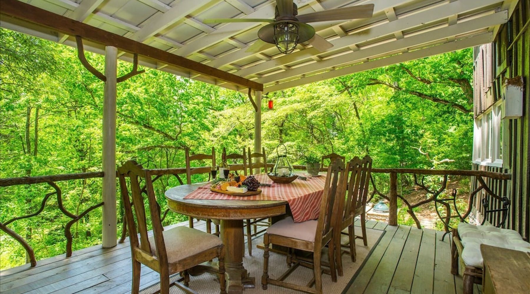 This lovely 100-year-old rental has a raised deck for lounging and spying on the wildlife, not exactly a treehouse, but more a house in the trees.