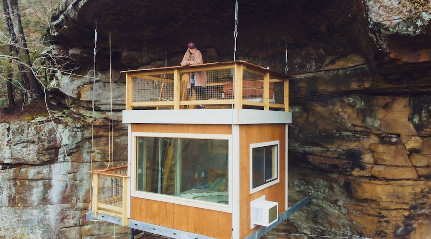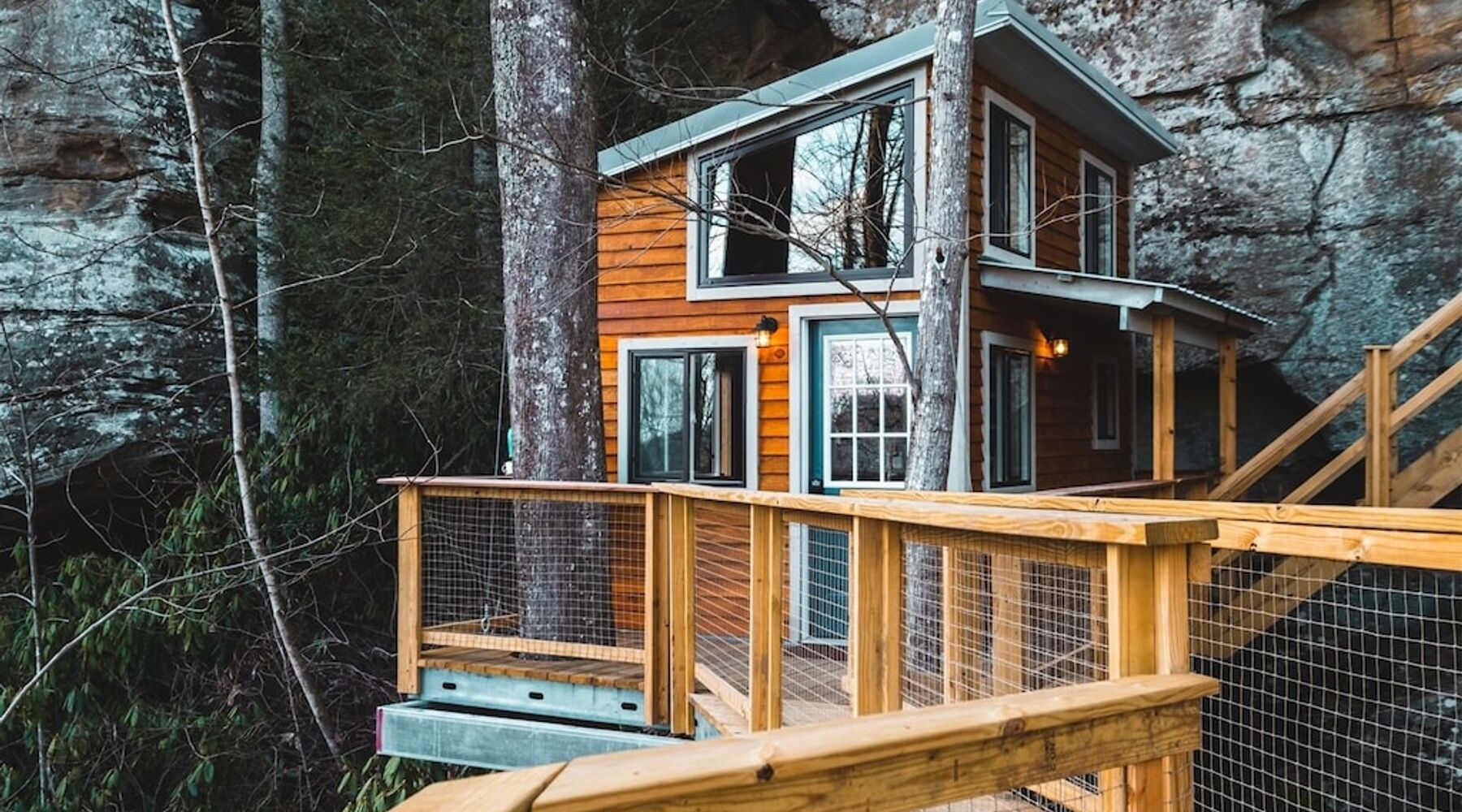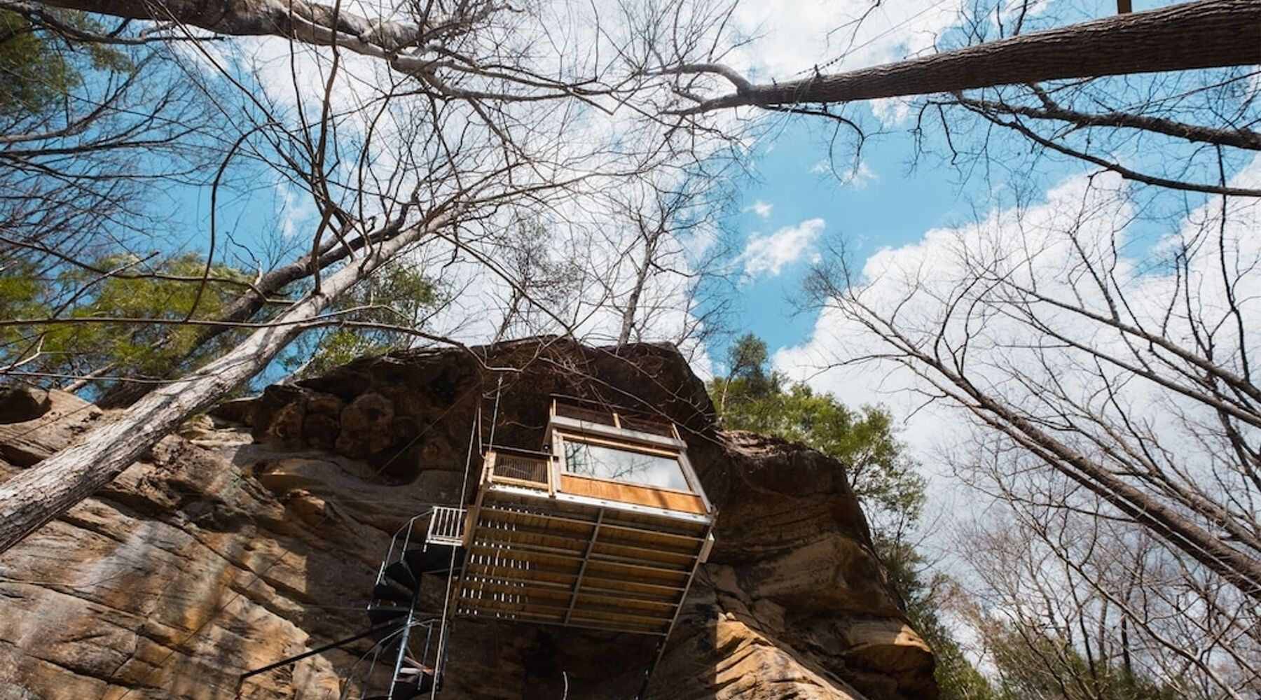 Cliff Dweller is the first cliff-mounted rental in the Red River Gorge! With the goal of creating a more intimate experience with the beautiful sandstone the Gorge is known for, The Canopy Crew set out to build what is now one of the most unique and adventurous dwellings you can dream of. This innovative design blends tree and stone, architecture and engineering, and comfort with exposure.