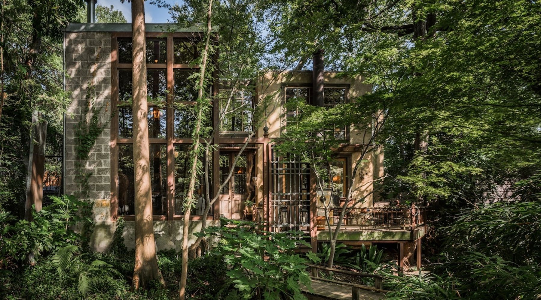 Winding gravel footpaths through a forested canopy lead to the footbridge traversing Ash Creek onto the Treehouse entry. Tucked away in the heart of Little Forest Hills, this timeless, private property is truly extraordinary.