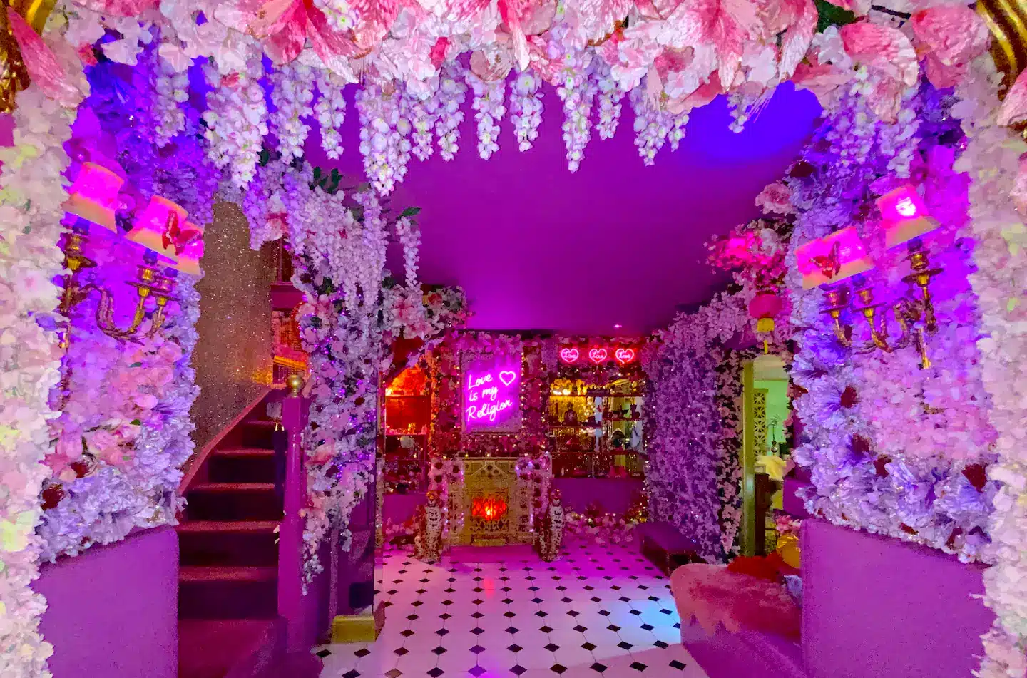 A gorgeous victorian mansion built in 1883, filled to the brim with over the top lavish glamour and lots and lots of PINK. You can even rent a pink escalade, or a pink moped with eye lashes for an additional fee!