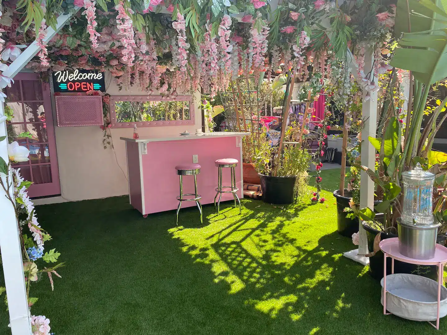 The fun doesn’t stop as the sun sets. A fully stocked bar awaits, where you can shake up your own sunset cocktails—because why not live your mixologist fantasy while you’re living the Barbie dream?