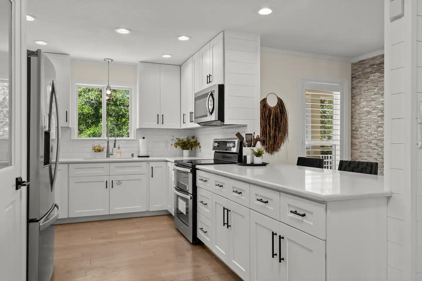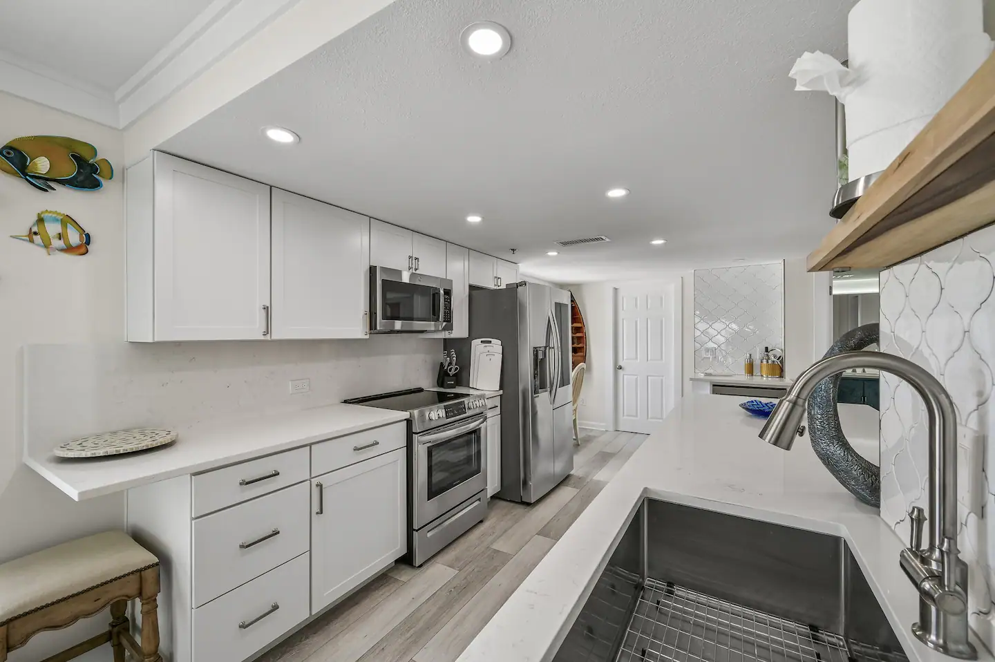 This place is packed with fresh upgrades: new luxury vinyl plank flooring, Trex decking on the new decks, and shiny quartz countertops throughout. The kitchen is fully stocked with stainless steel appliances and a versatile coffee pot for all your caffeine needs.