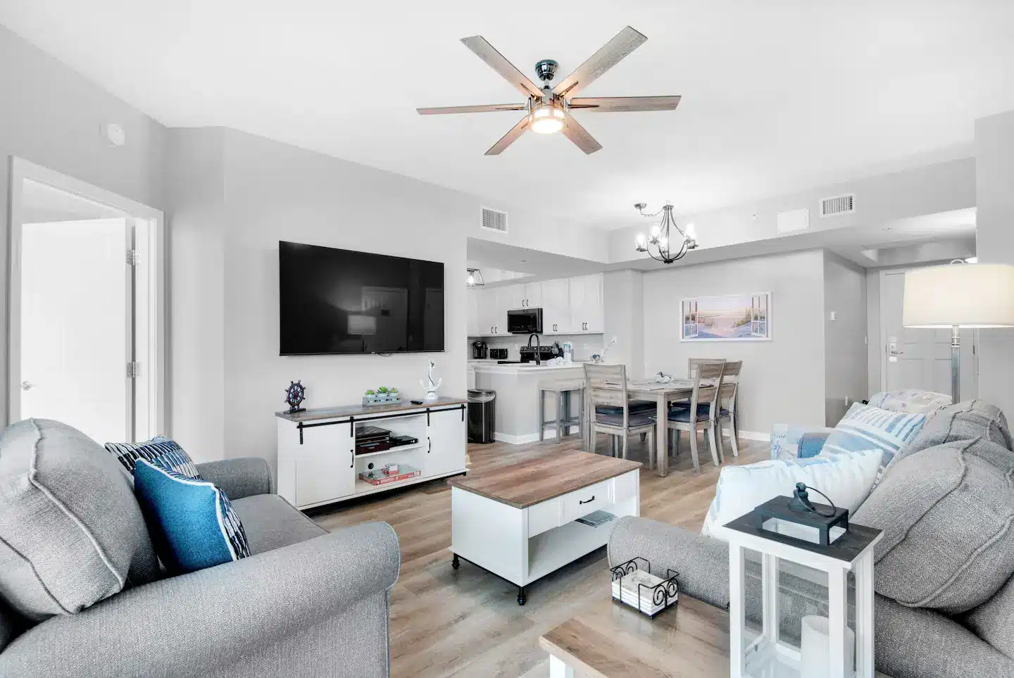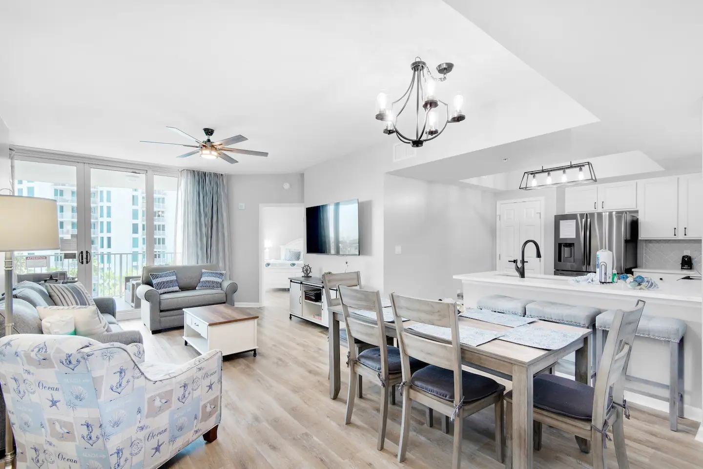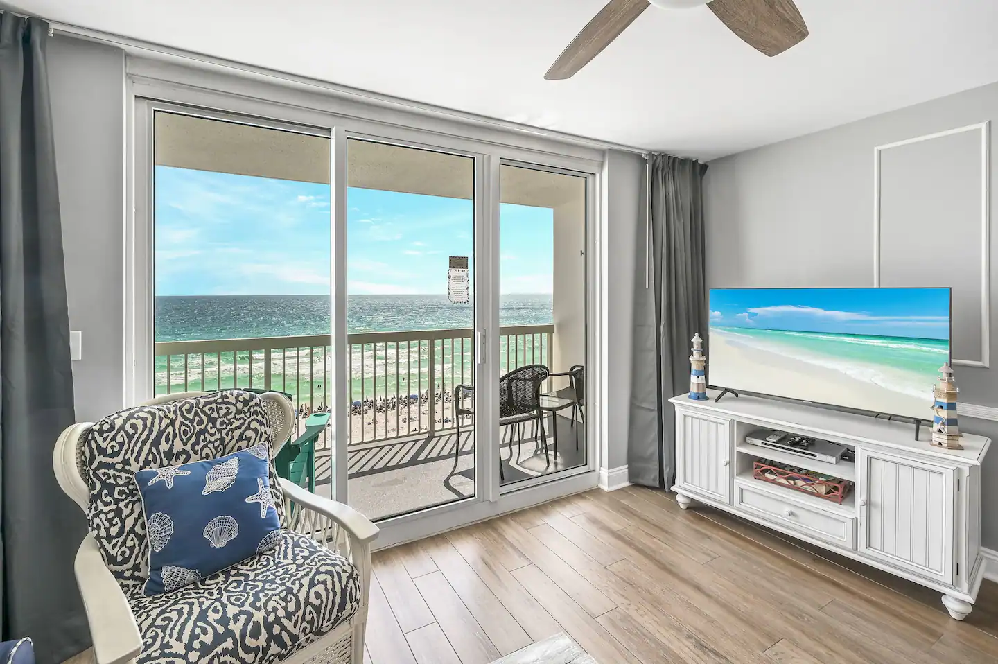 Sleeping six comfortably, this condo is packed with top-tier amenities. Inside, you’ll enjoy premium bedding, state-of-the-art kitchen appliances, and super-fast 1 Gbps WiFi. Every room has smart TVs, perfect for binging your favorite shows after a day at the beach.