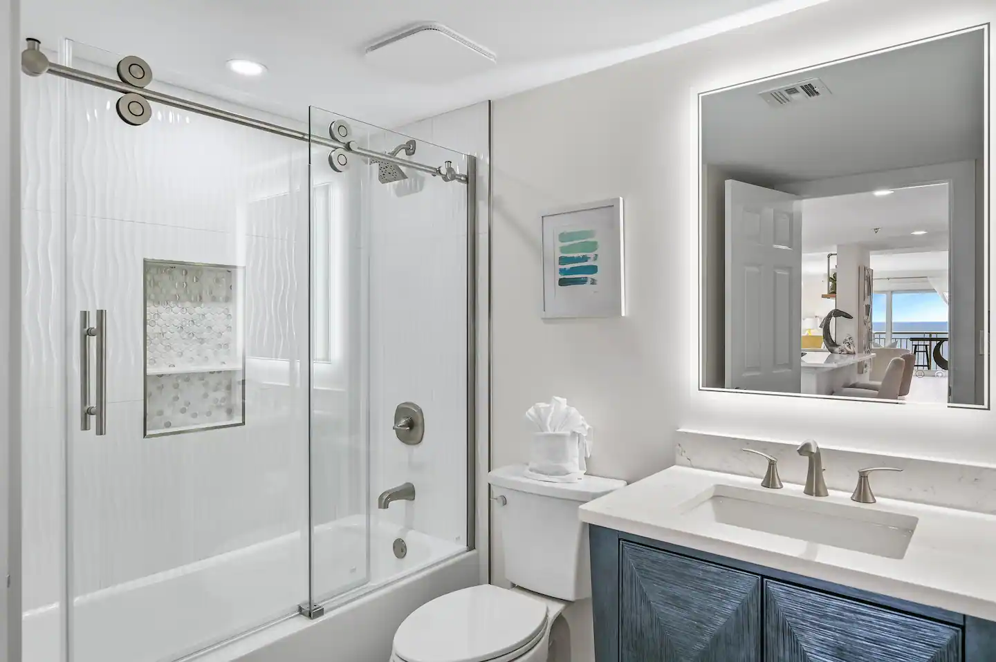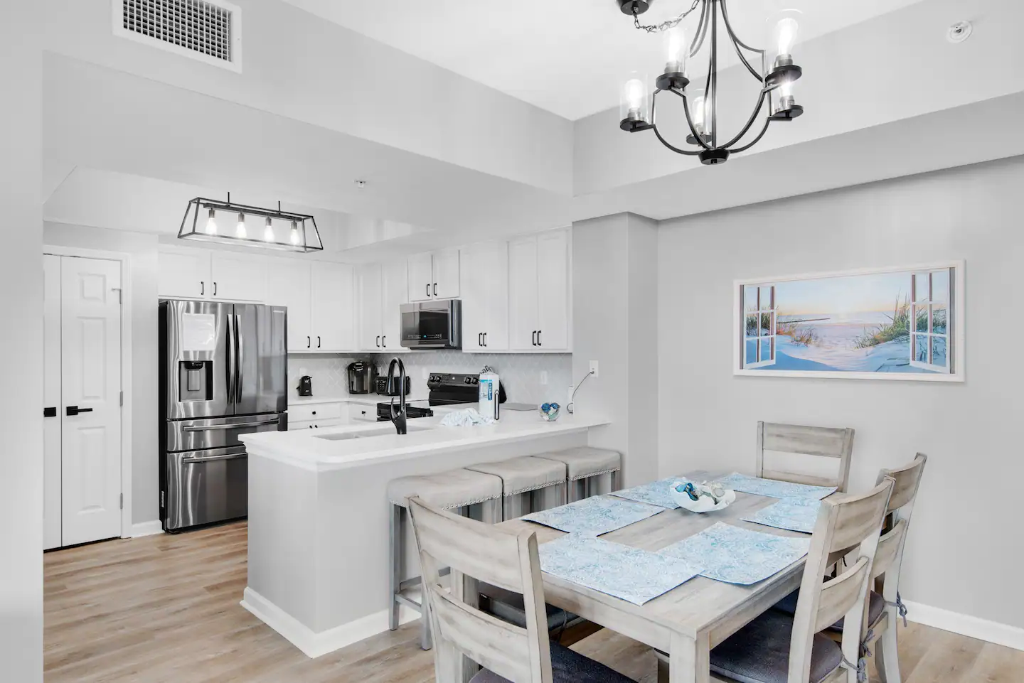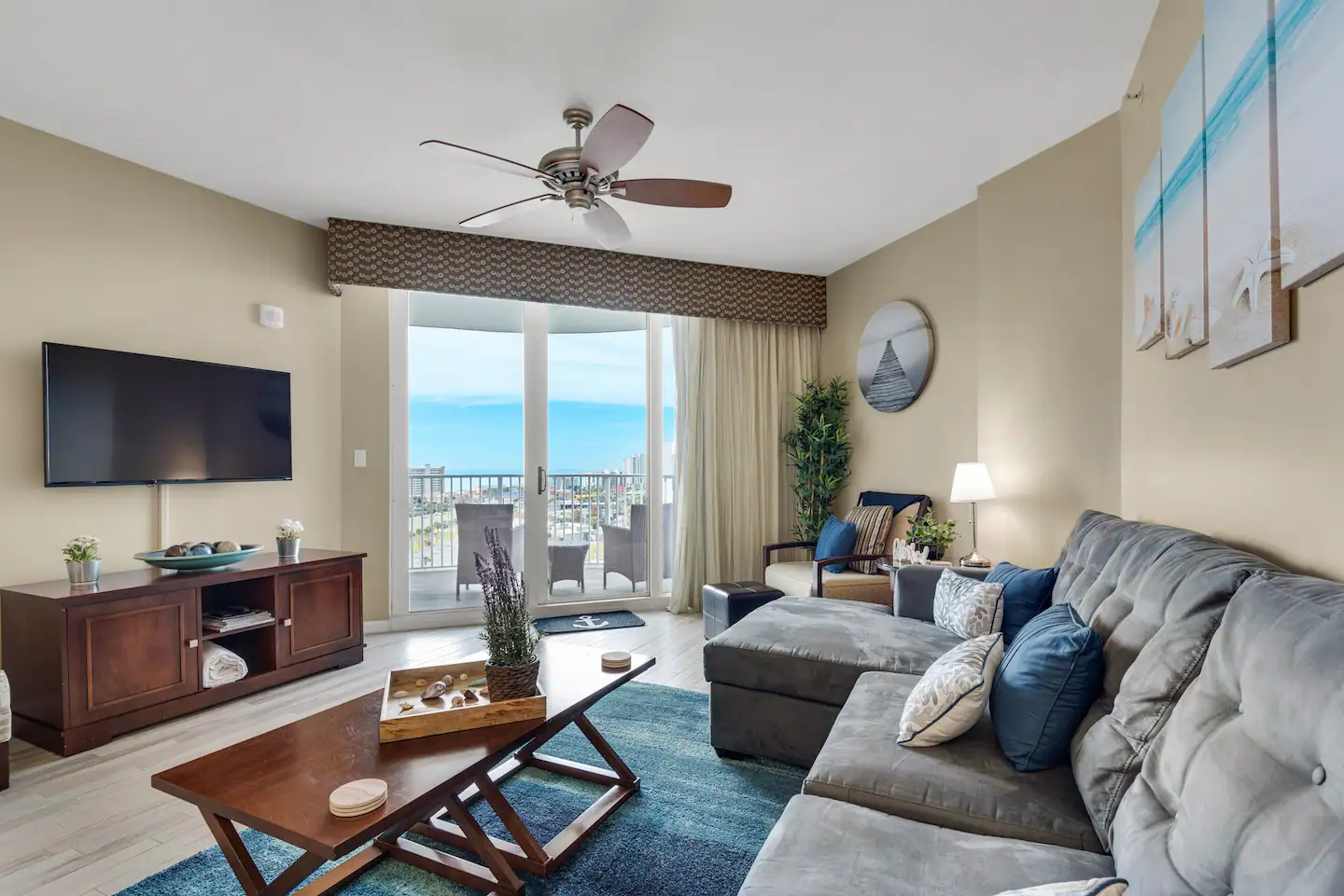 Sleeping six comfortably, this condo is packed with top-tier amenities. Inside, you’ll enjoy premium bedding, state-of-the-art kitchen appliances, and super-fast 1 Gbps WiFi. Every room has smart TVs, perfect for binging your favorite shows after a day at the beach.