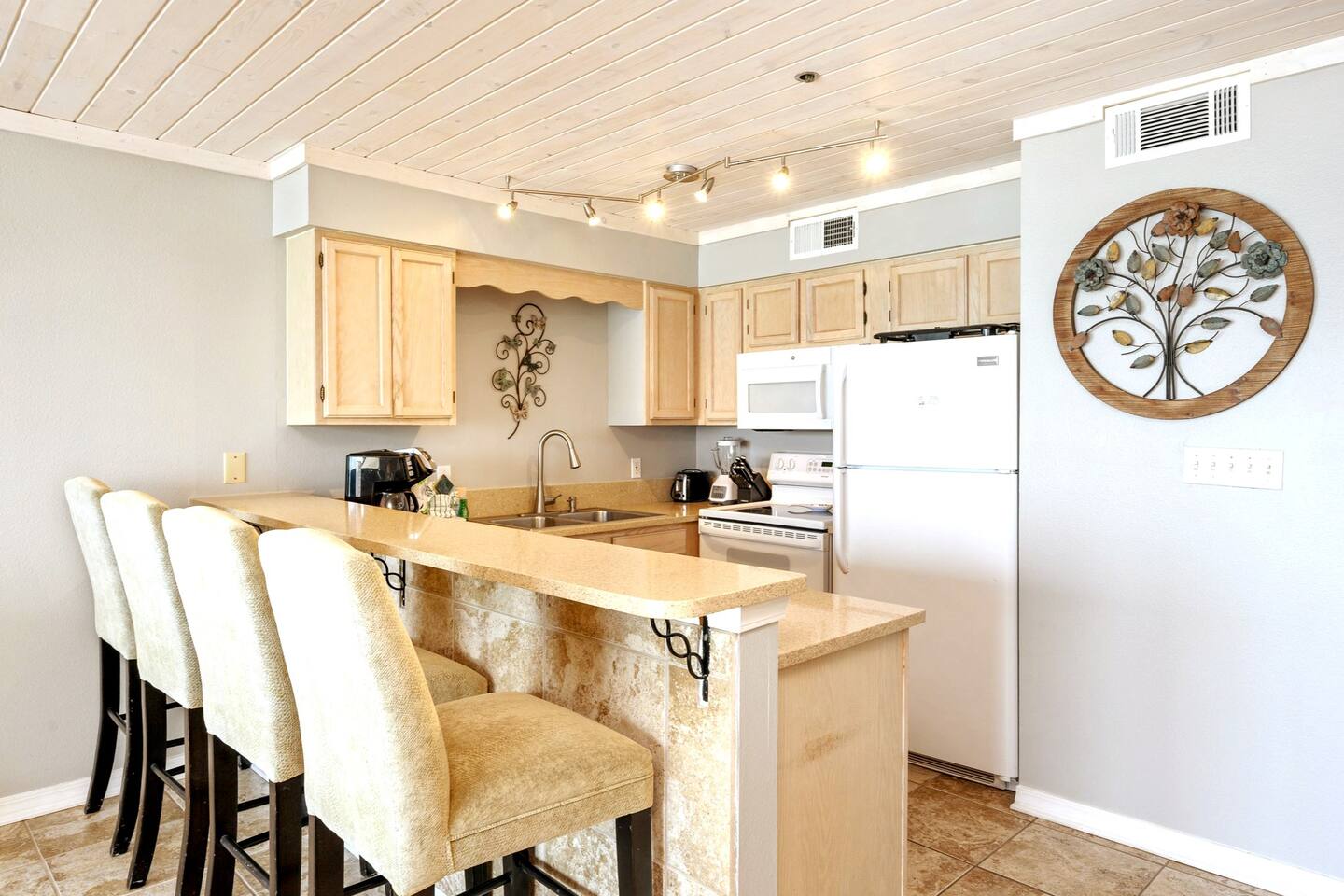 The kitchen comes fully stocked, perfect for brewing your complimentary Starbucks or Nespresso coffee to kick off the day. Families will love the portable playpen and booster seat for the little ones.