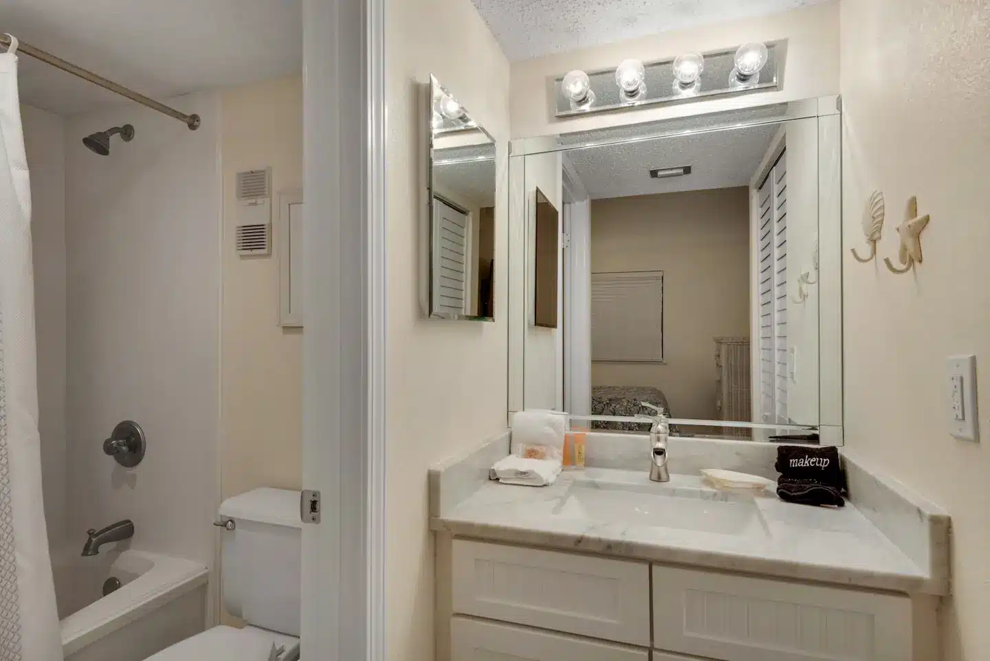 Last but not the least is this fully furnished 2BR/2BA condo is perfect for families, comfortably sleeping six. Each bedroom comes with a TV and private bathroom, giving everyone their own space.