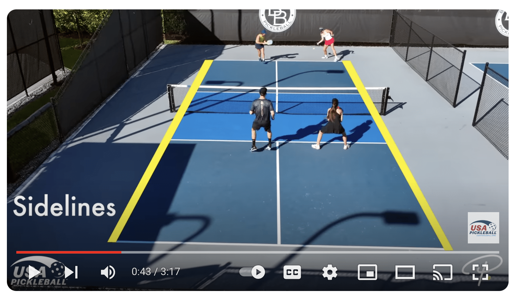 A standard pickleball court size is 20′ W x 44′ L, with a 36-inch-tall net system.