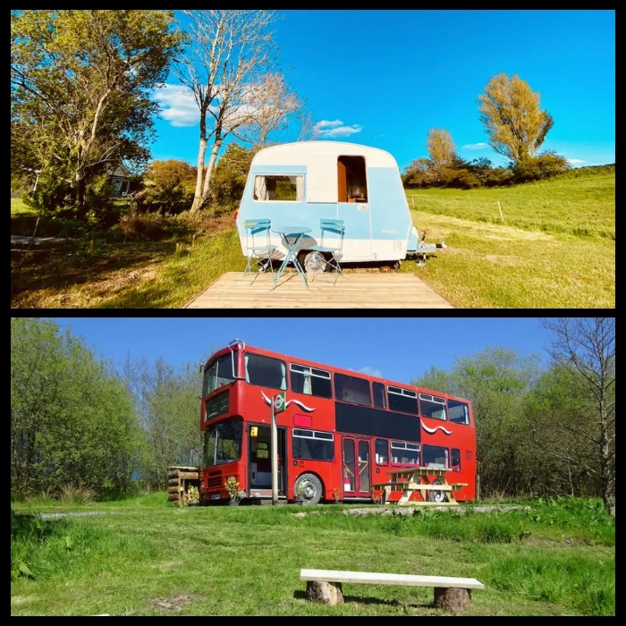 B. A weekend in a double decker bus in Wales https://hichee.com/listings/7920259