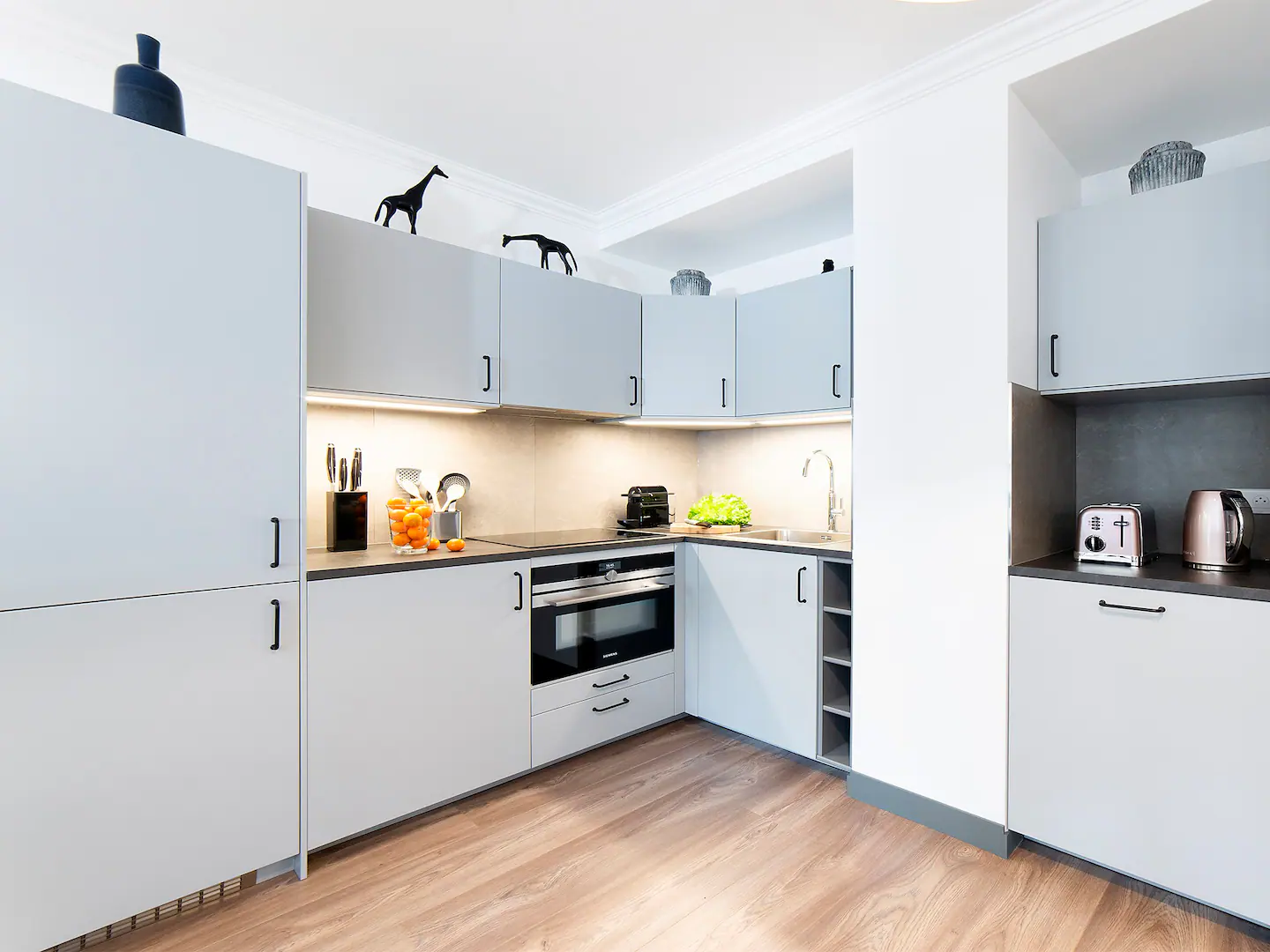 It comes with a dish washer, washer dryer, microwave, kitchenware, toaster, electric kettle and Nespresso coffee machine with capsules provided.