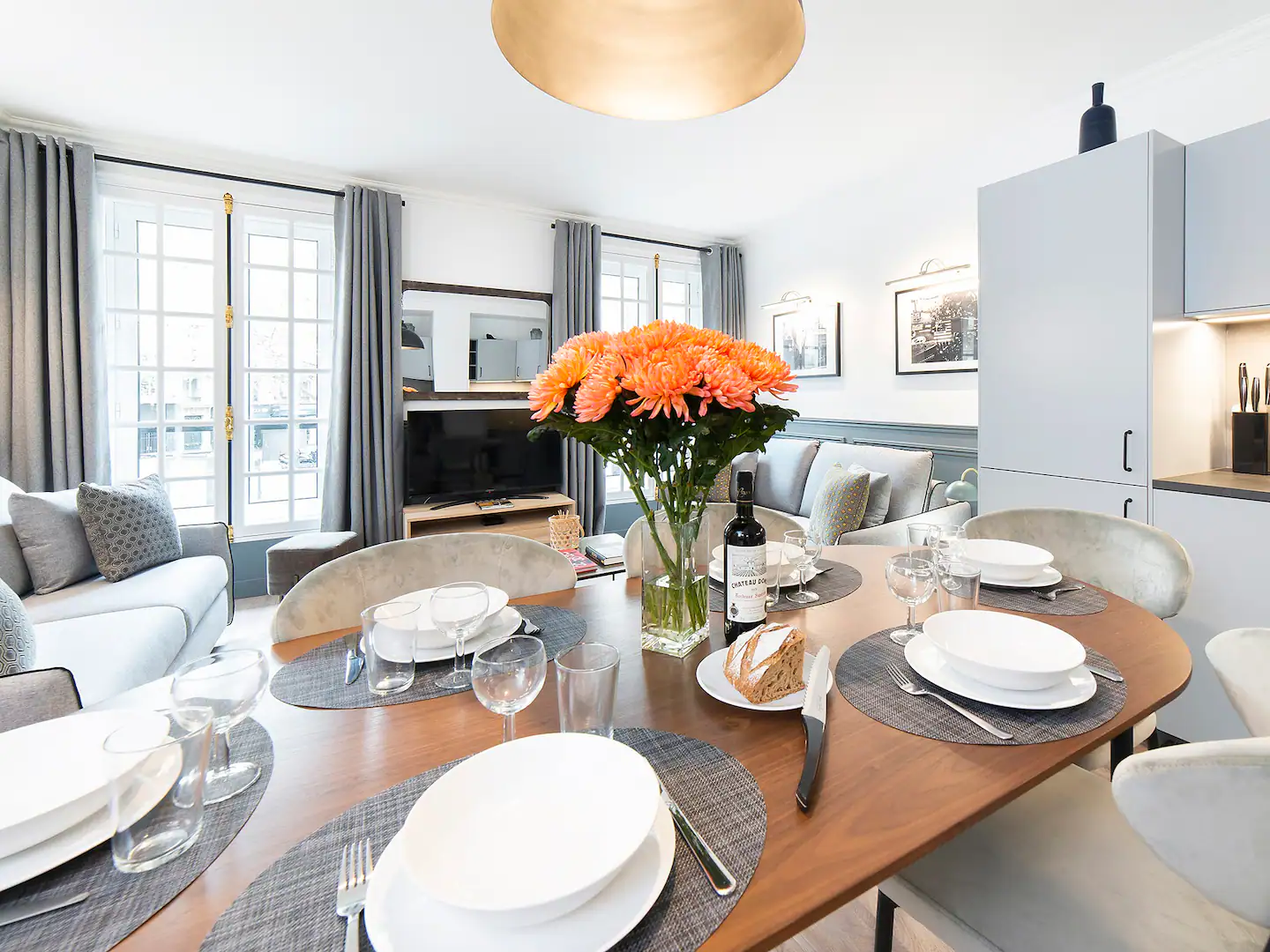 Two stylish bedrooms, two spa-like baths, and a kitchen that’s a foodie’s dream! Netflix and chill? No prob with a cozy living space. Nestled in the Marais, this pad is a touchdown for experiencing Paris. Game on!