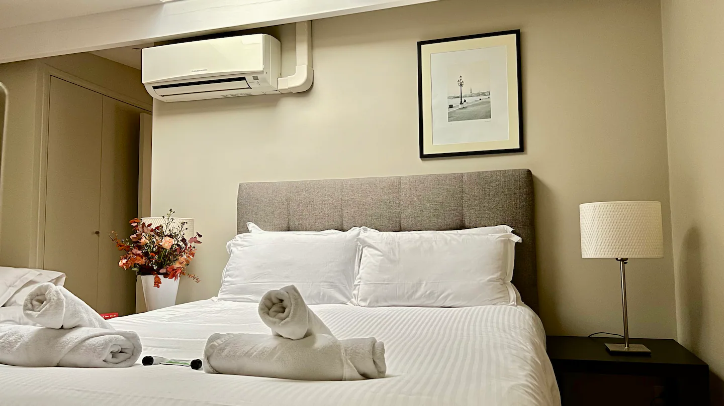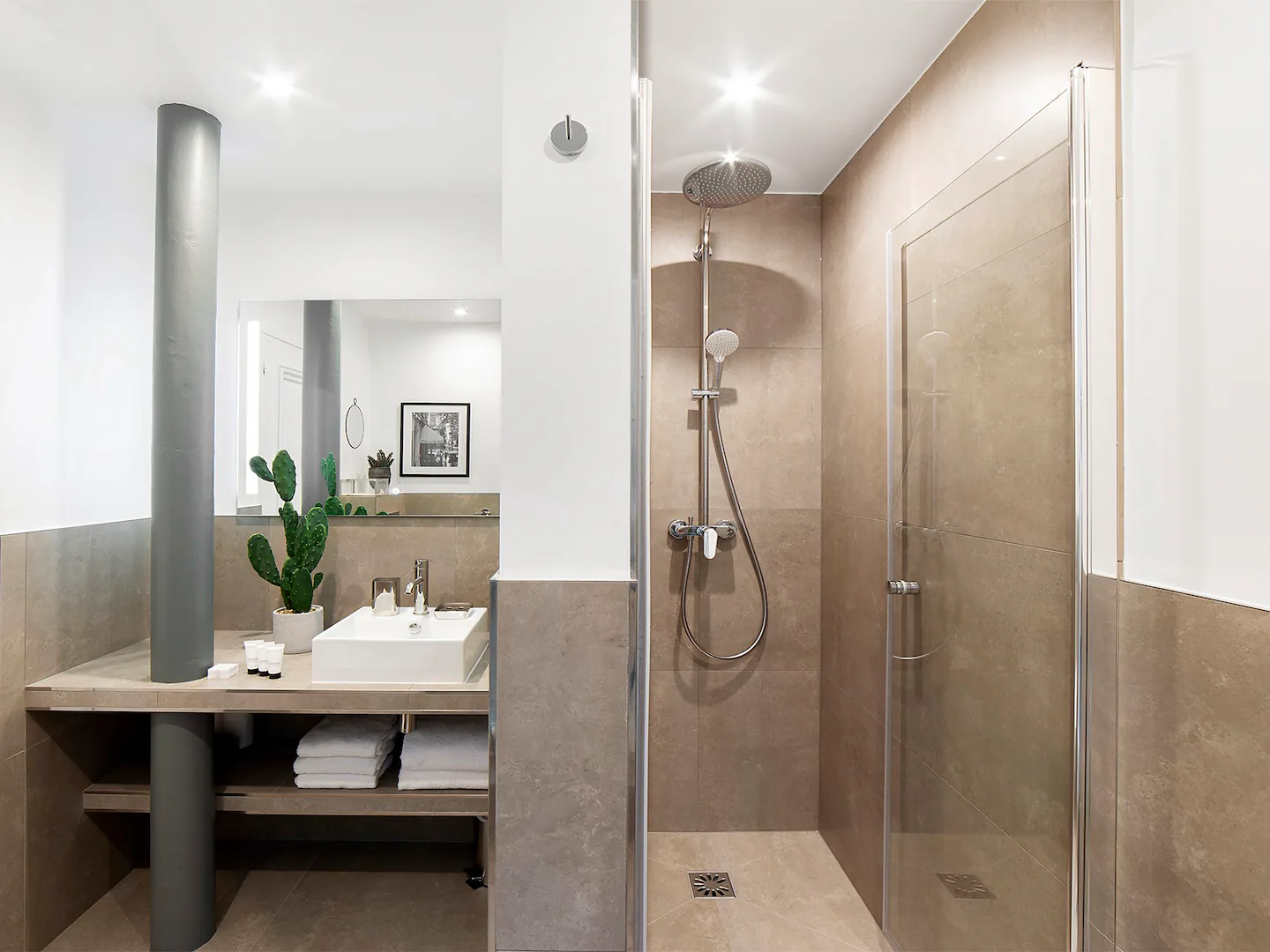 The apartment is made up of a generous high standard bed. It features flat-screen TVs (cable and satellite channels) and a bathroom with a large rain shower, towels and toiletries (soap, shampoo, conditioner, body lotion and shower soap provided).