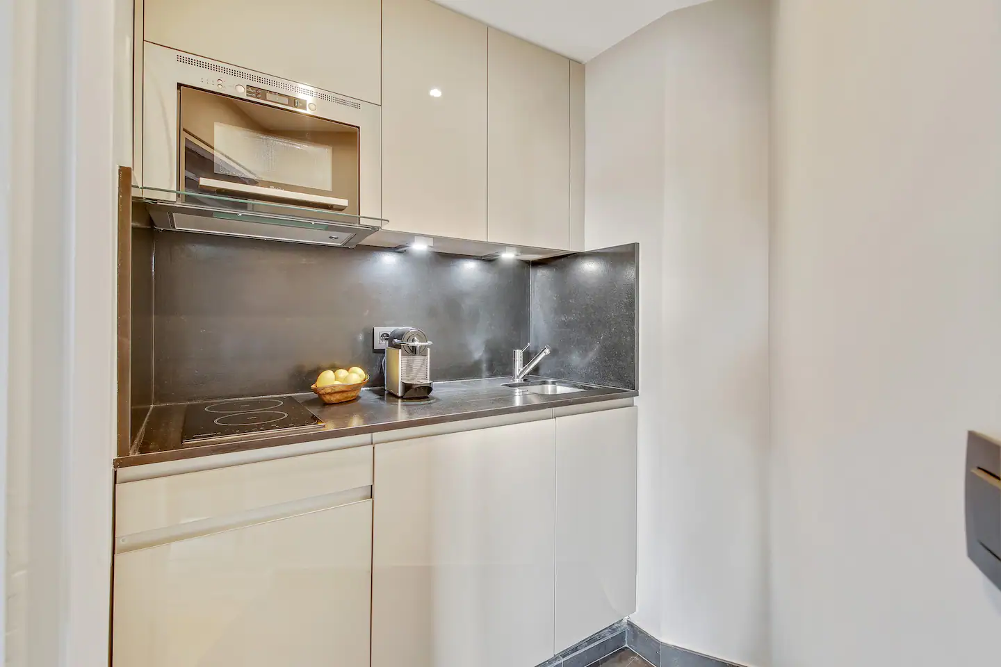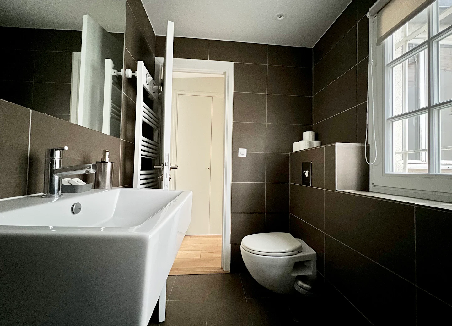 In the modern and fully equipped kitchen, you can cook just like at home, perhaps using delicious ingredients from one of Paris’ celebrated outdoor markets. There is a stove, an oven, a fridge, a microwave, a Nespresso coffee machine and a dishwasher. Laundry can also be done by our in-house chambermaid and delivered to your door on request. This apartment really has all the equipment you need to have a perfect stay.