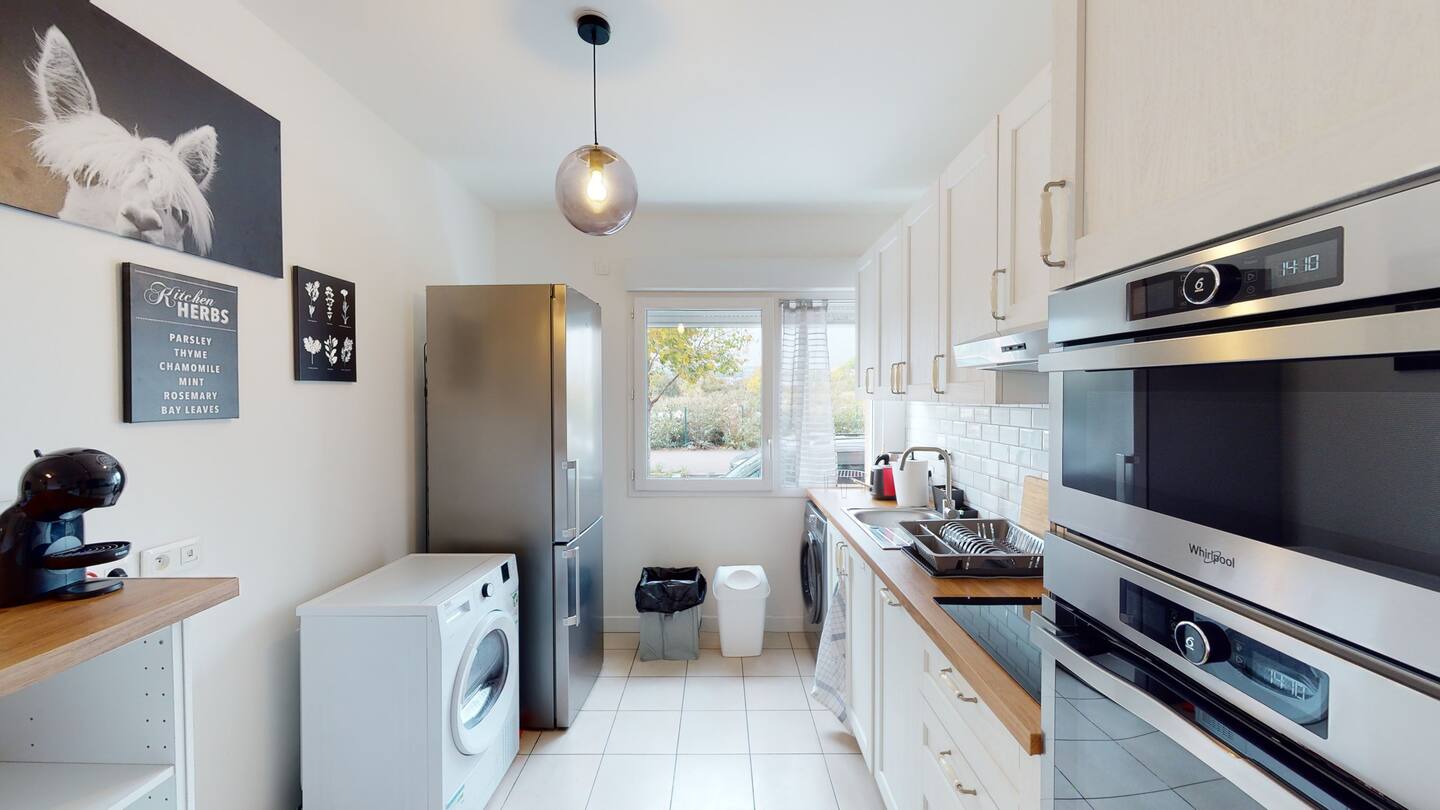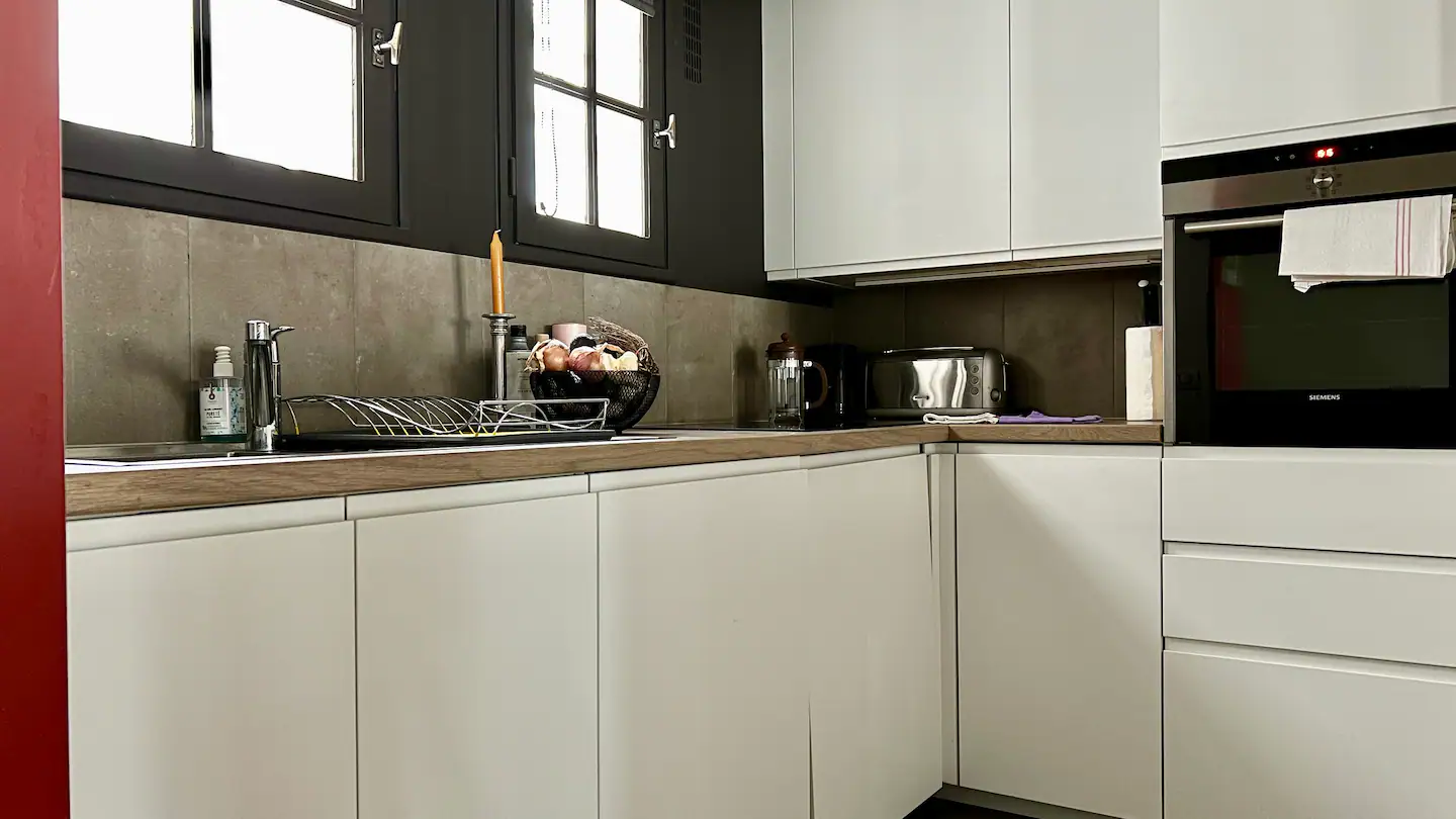 The kitchen’s packed with modern appliances – and yes, a dishwasher! Spruced up with a sleek bathroom, washer-dryer combo, and swift water heater, it’s all about comfort. And for the remote work tribe, there are dedicated workspaces with PC screens and ultra-fast fiber internet.