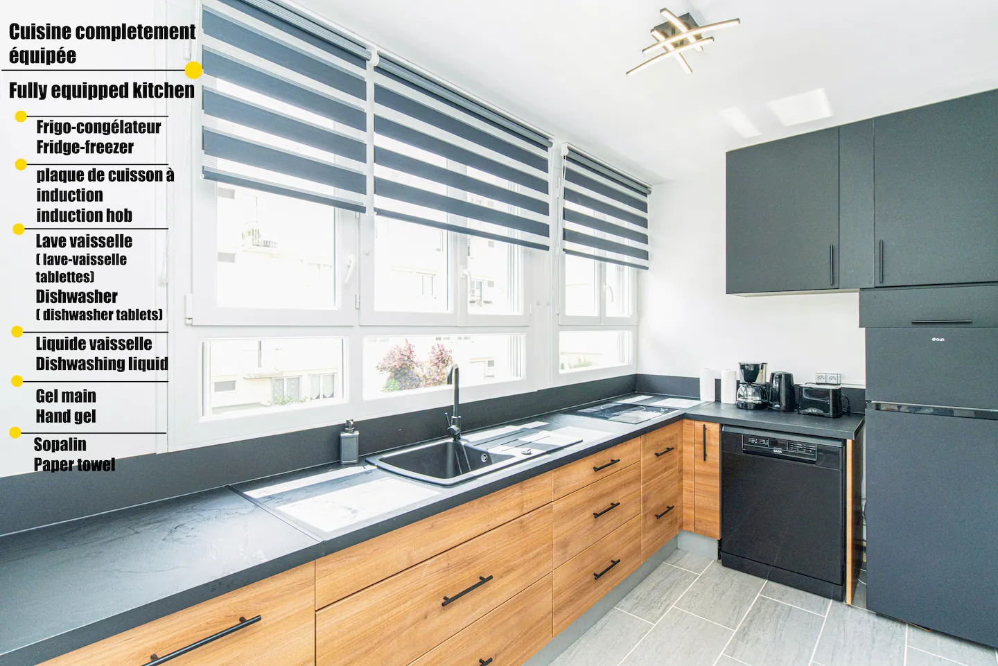 Nestled just 5km from Paris’s heart and primed for the 2024 Olympics, this chic, freshly-renovated apartment is your ultimate Parisian hideaway. Slide into two cozy bedrooms equipped with heating mattress pads ensuring dreamy nights. Lounge in the spacious living area, kick back with Netflix on the Android Smart TV, or step out onto the balcony for some fresh vibes. Got some gourmet magic in mind?