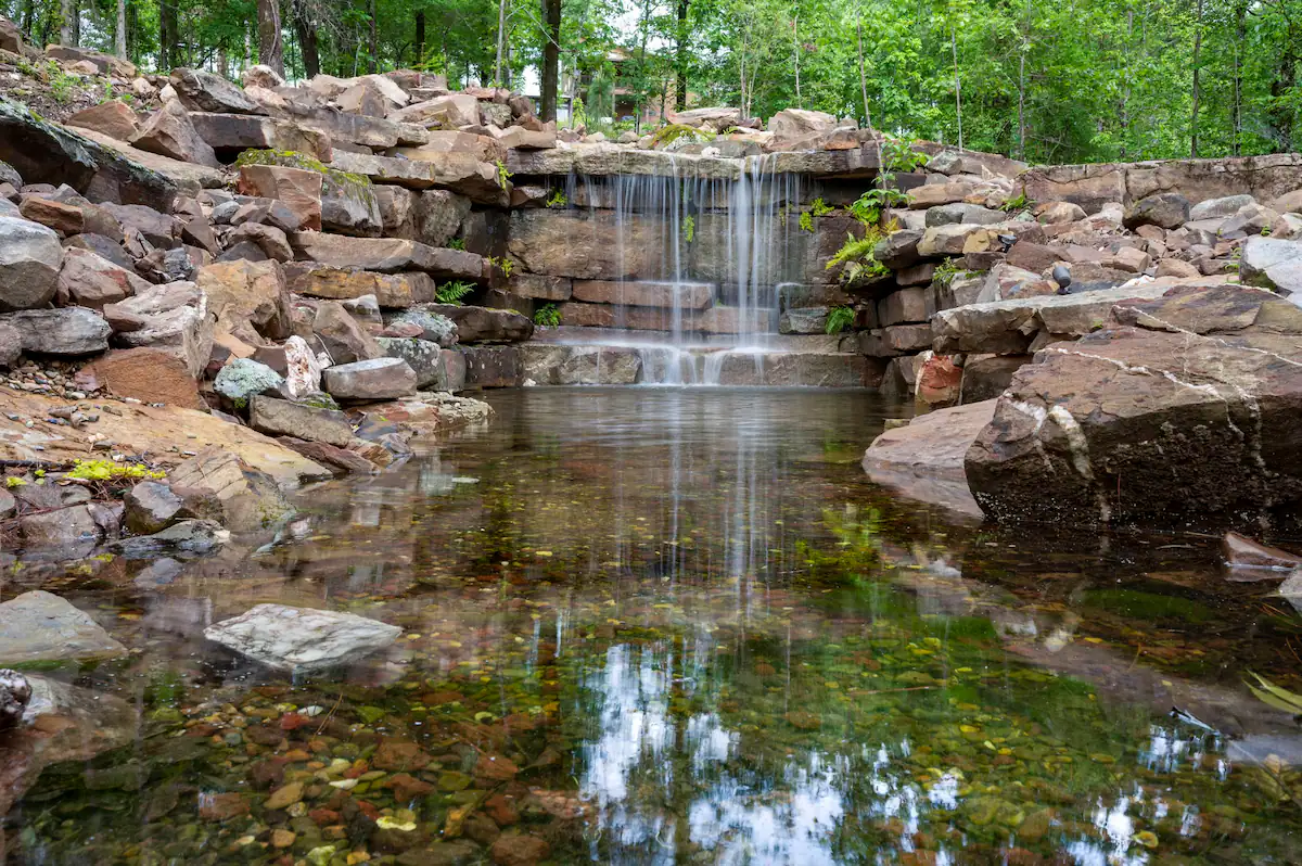 This cabin is a standout destination, boasting its own personal waterfall, which turns the idea of a typical cabin retreat on its head.
