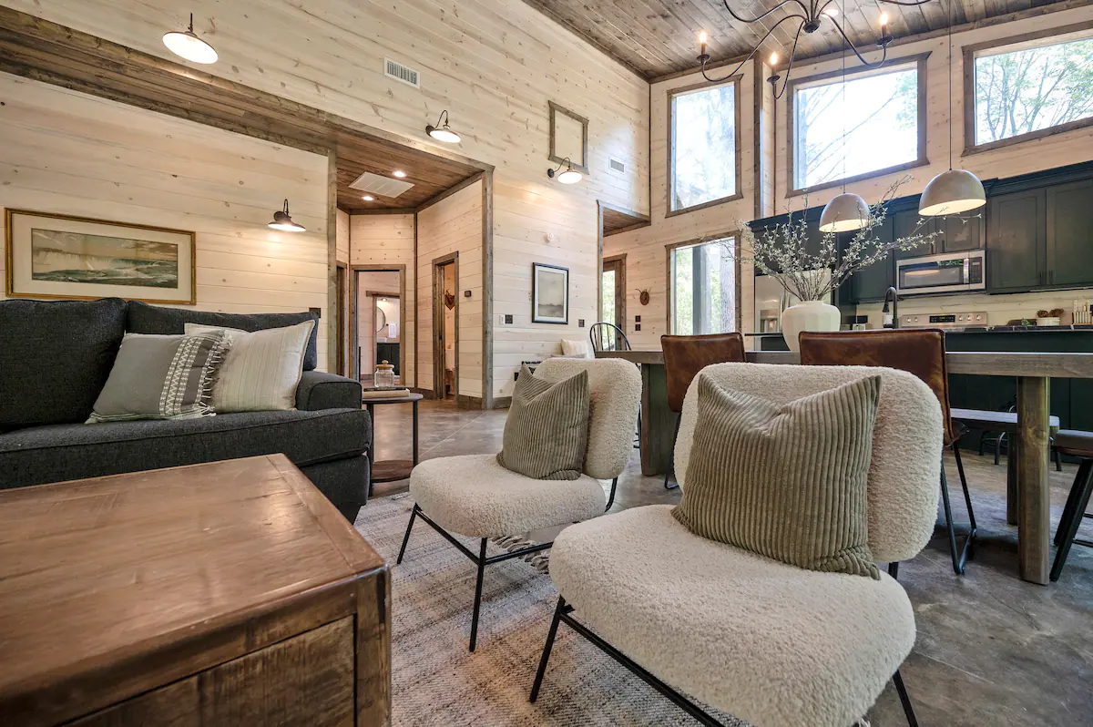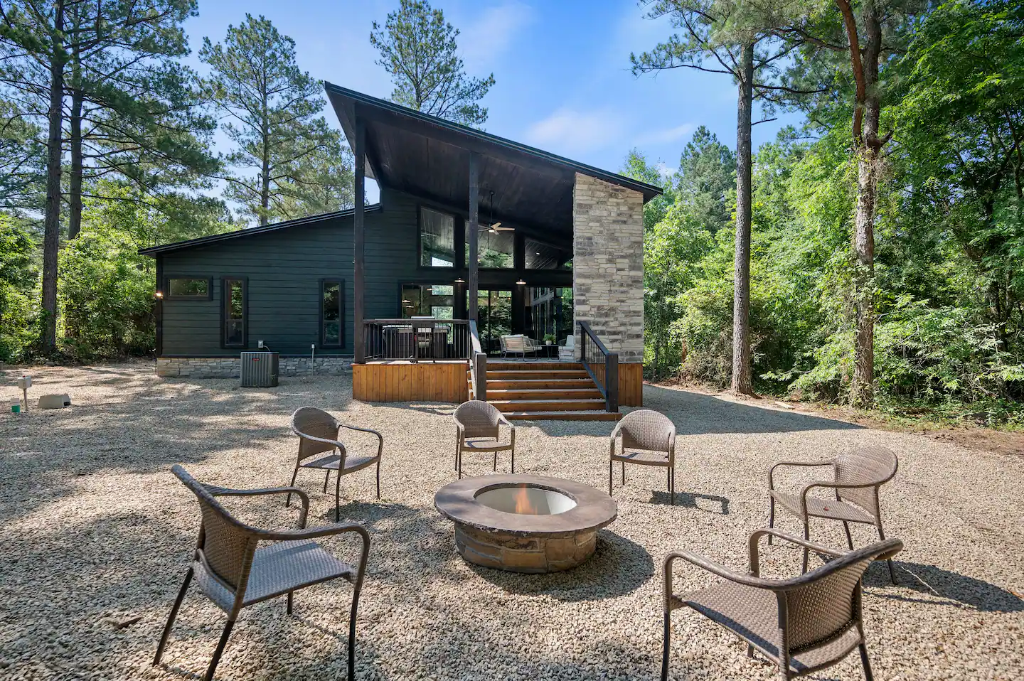 Located in Hochatown, Oklahoma, this modern cabin offers a slice of tranquility just a quick jaunt from the thrills of Beavers Bend State Park and Broken Bow. It’s the perfect hangout for adventurers and relaxation seekers.