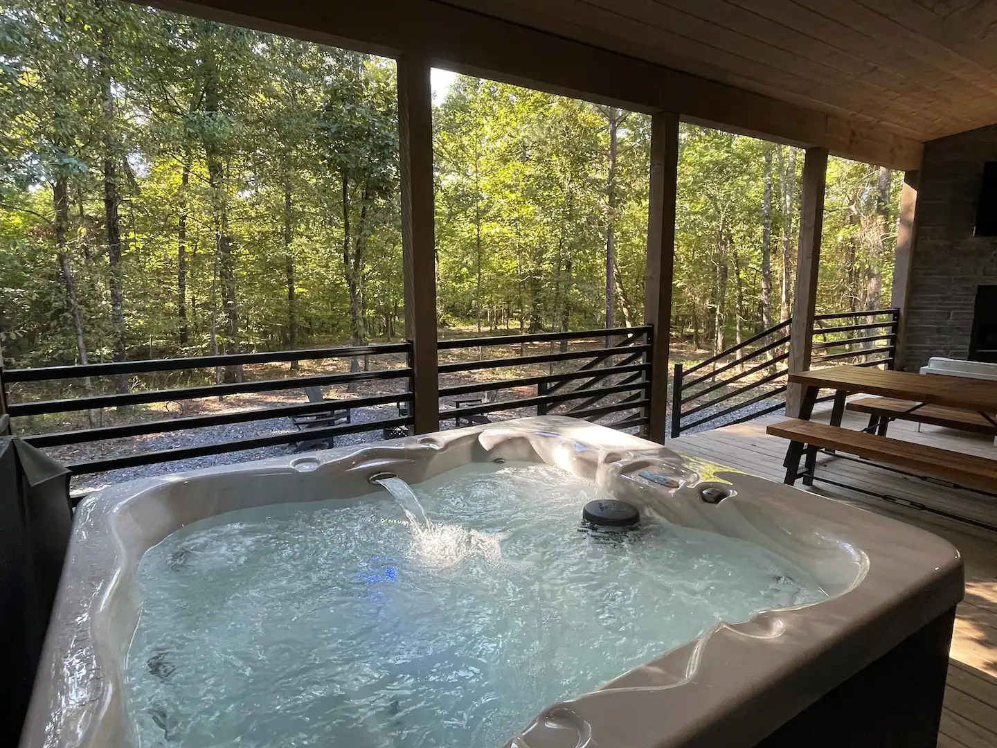 Guests often rave about the modern amenities, the privacy, and the cleanliness of the cabin. The hot tub is a favorite feature, along with the game offerings such as cornhole and Jenga. The ability to check in with a smart lock for a seamless entry also stands out in reviews.