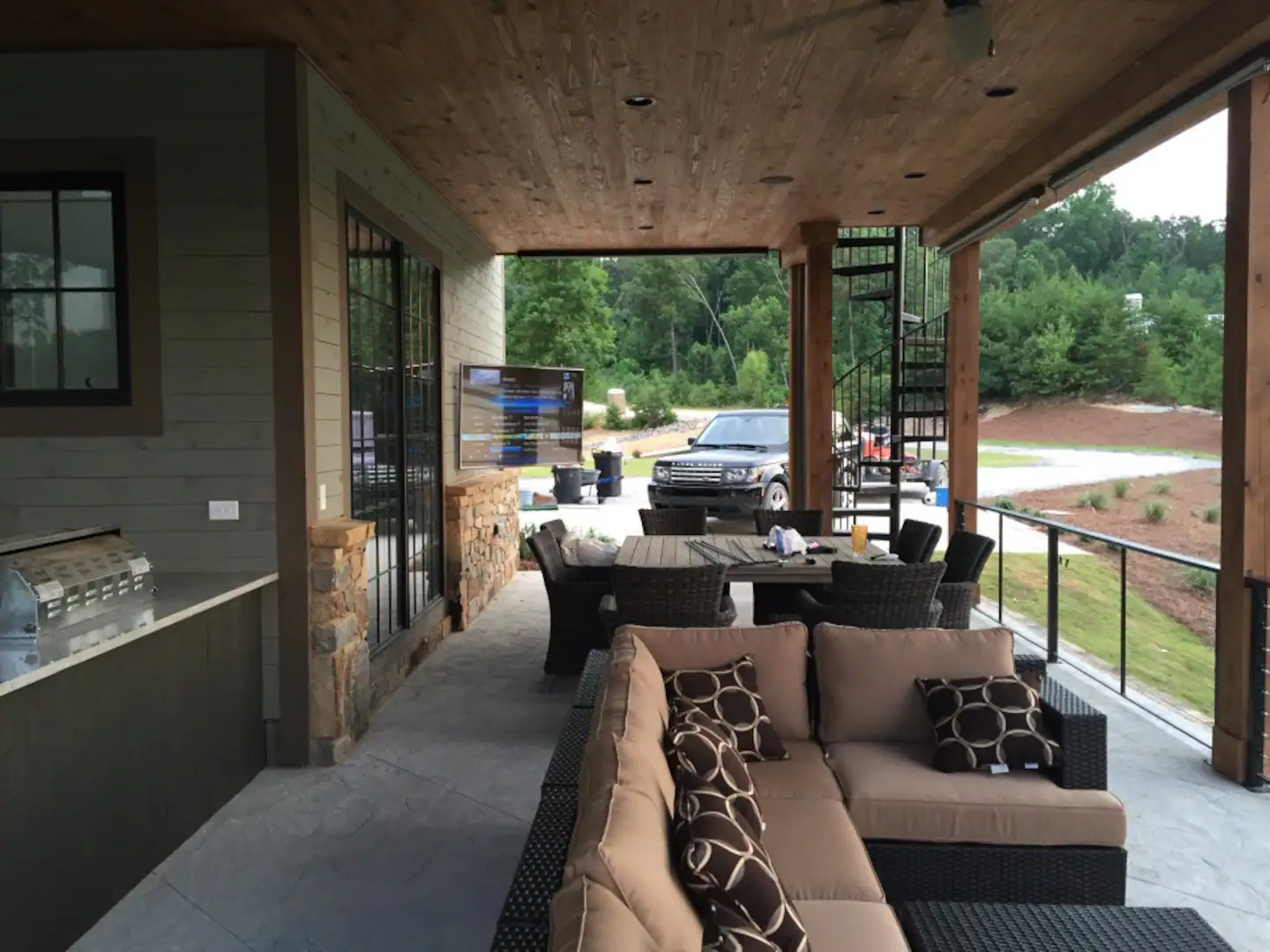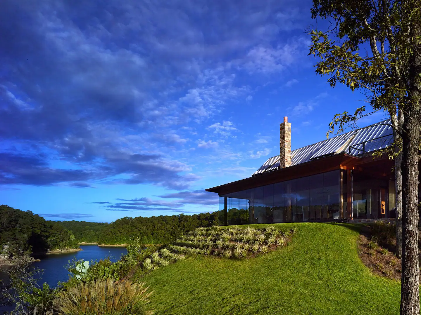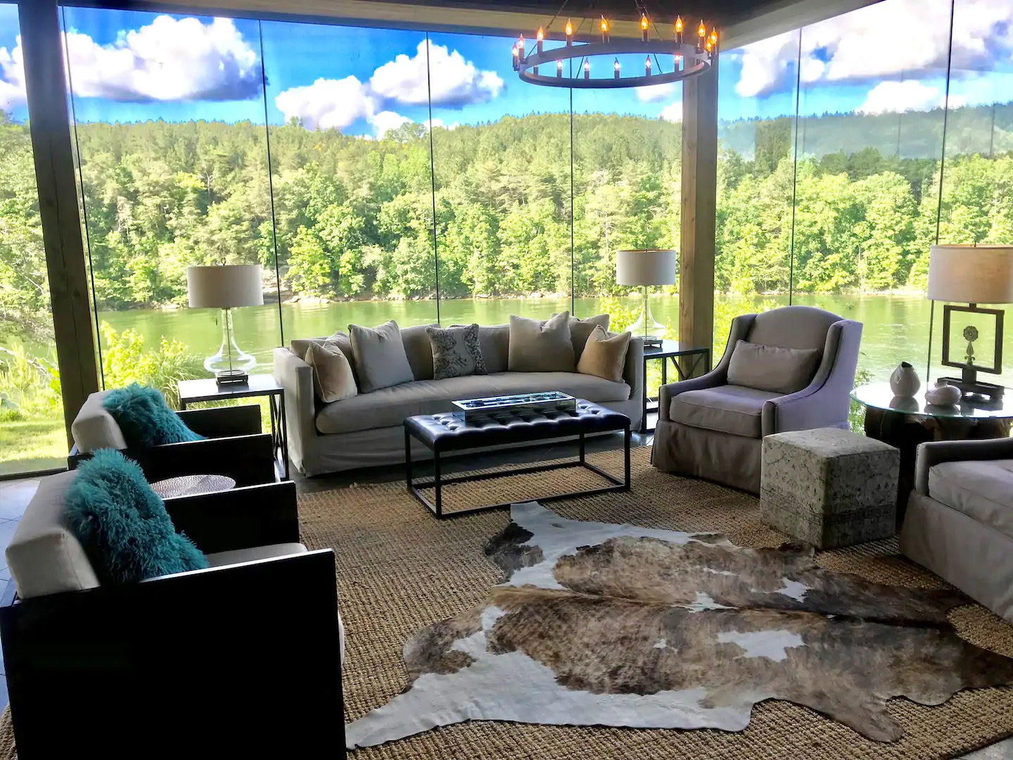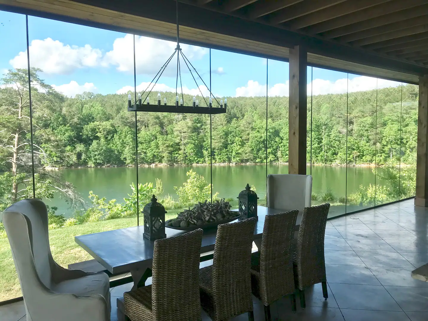 Nominated for “House of the Year” by Arch Daily (the world’s most-visited architectural website), this property has been featured in numerous architectural magazines for its unique design and panoramic views. The property is located on a unique point lot surrounded by water on all sides. You’ll love my place just 45 minutes from downtown Birmingham on Lewis Smith Lake because of the amazing panoramic views, the natural light, and the 40 acres of private lake living. The house has an attached boat dock, with access to kayaks for exploring the lake.