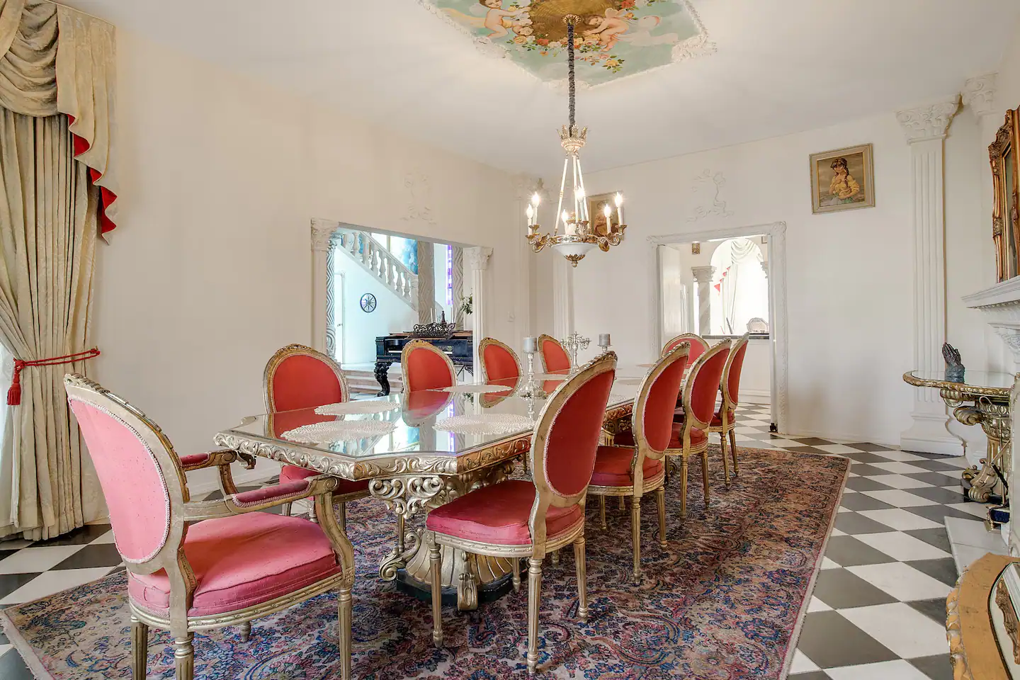 Del Mar Villa, a sweeping estate in Oregon’s Wine Country, sits on 46 acres amidst lush hazelnut and blueberry fields. This 26,000+ sq ft luxury villa boasts 11 tastefully decorated bedrooms and more than 10 bathrooms, ideal for large gatherings.