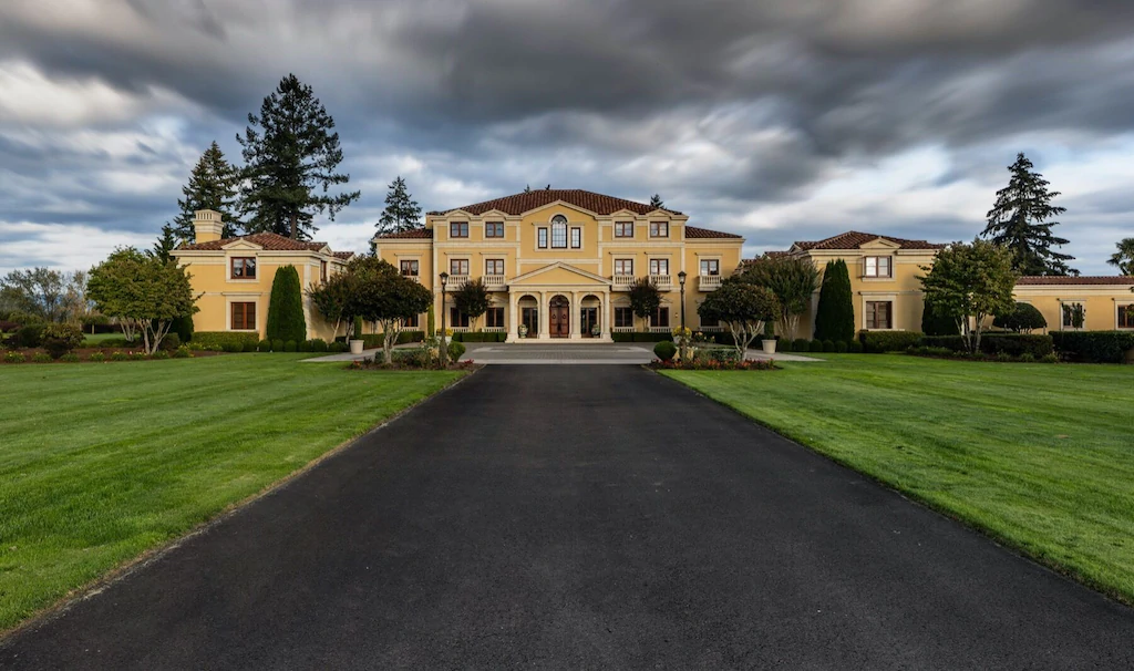 Welcome to Del Mar Villa, a 26,000+ sq ft luxury ‘Italian Chateau-inspired Villa on 46 acres in the heart of Oregon Wine County (less than 1-hour southwest of Portland, Oregon). Sprawling out behind hundreds of acres of hazelnut and blueberry groves, Del Mar Villa encompasses an impeccably maintained lawn, patio areas, sports courts, walking paths, an arbor, and much more. Perched above the Willamette River, the Villa features 11 bedrooms (8 luxury suites and a 3-bedroom family suite), 10+ bathrooms, private and gathering spaces, a ballroom, a chefs’ kitchen, 3 kitchenettes, a pool table with entertainment area, 3+ dining spaces, and endless outdoor spaces!