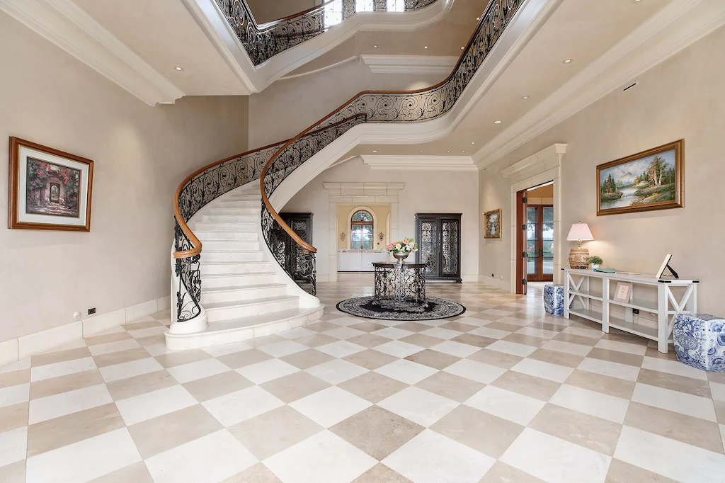 You will be wowed as soon as you enter and take note of the polished marble floors, grand staircase, marbled pillars, 20ft high ceilings & baby grand piano! The main living area has 2 separate seating areas with a large wall-mounted flat-screen TV for viewing when you aren’t taking in the views of the pool & lake. As you enter the open-concept kitchen & dining area, you will immediately notice the custom details and picturesque view overlooking the pool area & lake.