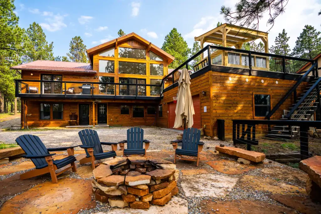 This massive 4200 sq. foot luxury house is a very quick and easy 7-minute, 2-mile drive to the ski lifts, and the house sits directly on fairway #4 of the Angel Fire Country Club golf course. Huge hot tub on the outdoor deck where you can watch the stars above you at night or the bull elk fighting below you in the day. Bring the whole family or even combine two or three families in this mountain getaway dream house for skiers, golfers, mountain bikers, and nature lovers.