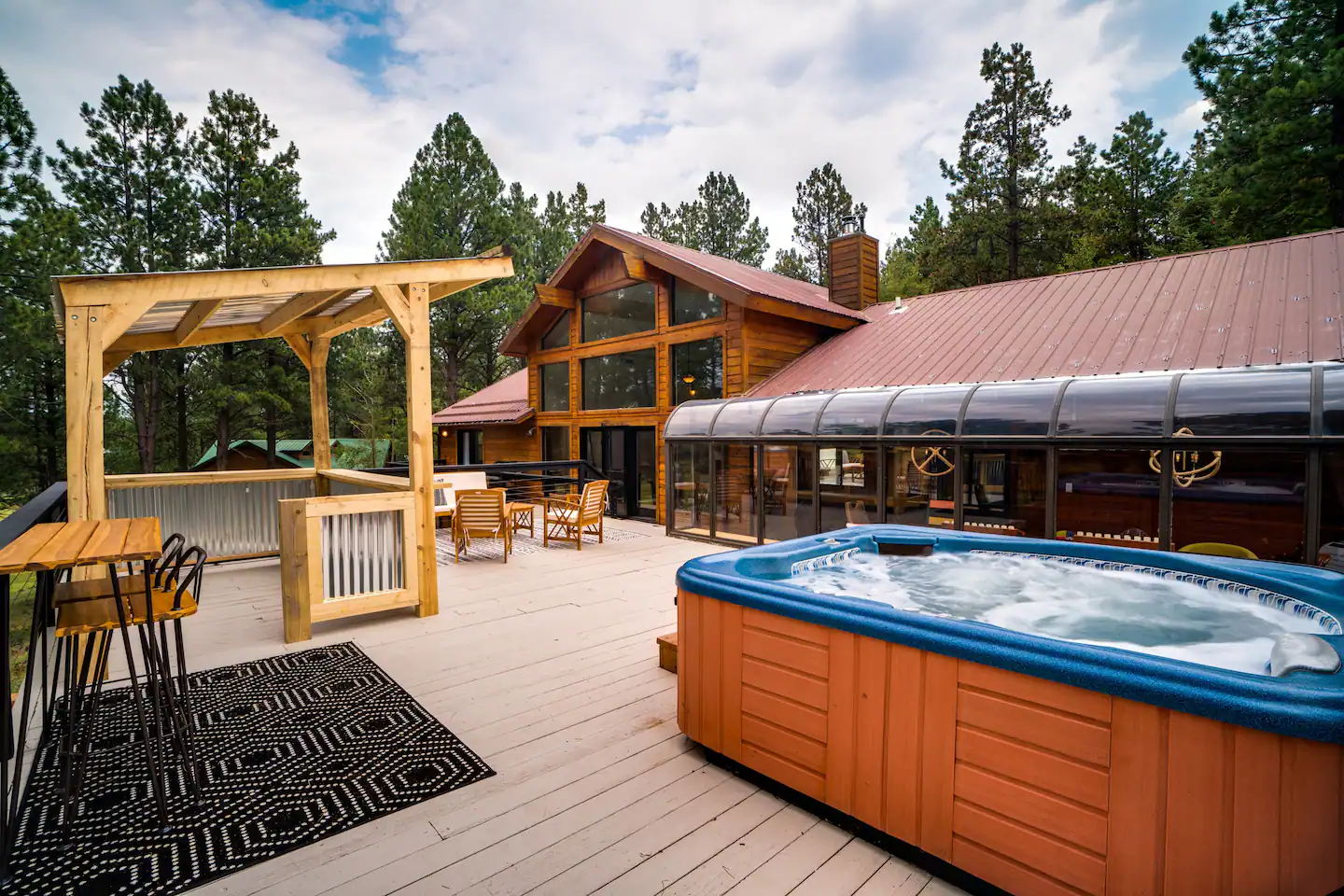 The next on our list is a rustic and luxurious vacation home perfect for ski-loving lovebirds! This jaw-dropping 4,200 sq ft posh home, a prime setting for an unforgettable wedding, promises more than stunning views and proximity to ski lifts. Its expansive outdoor deck featuring a large hot tub is perfect for romantic pre-wedding relaxation under the stars.