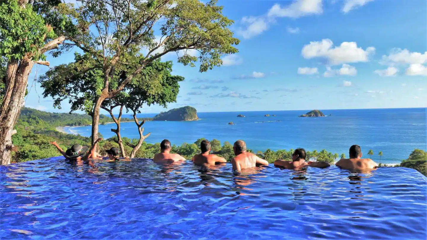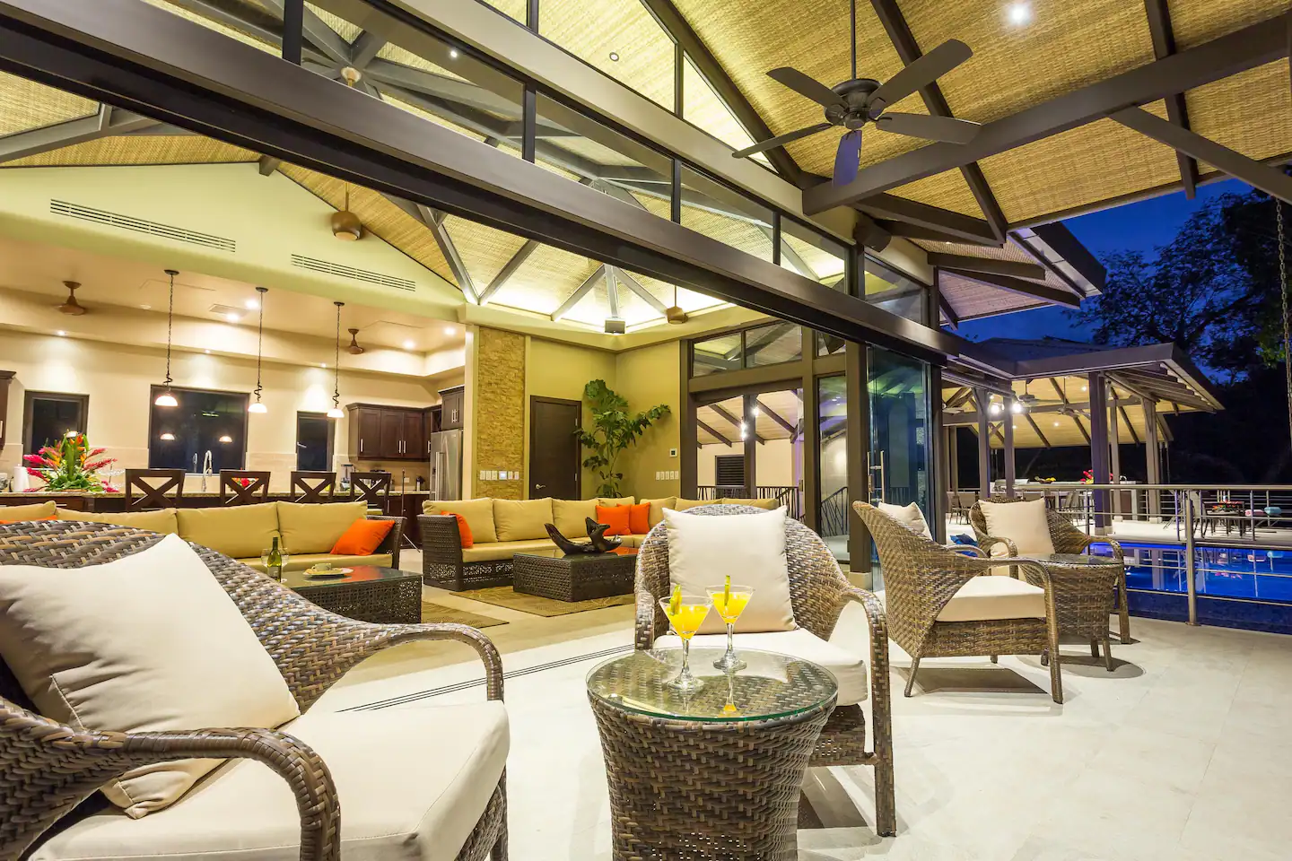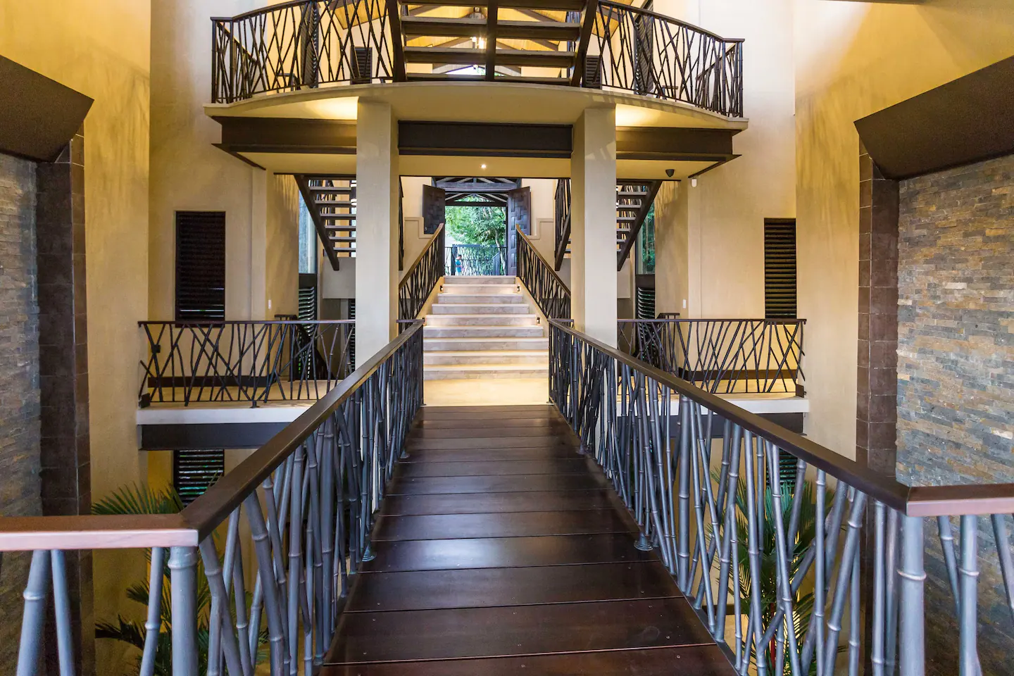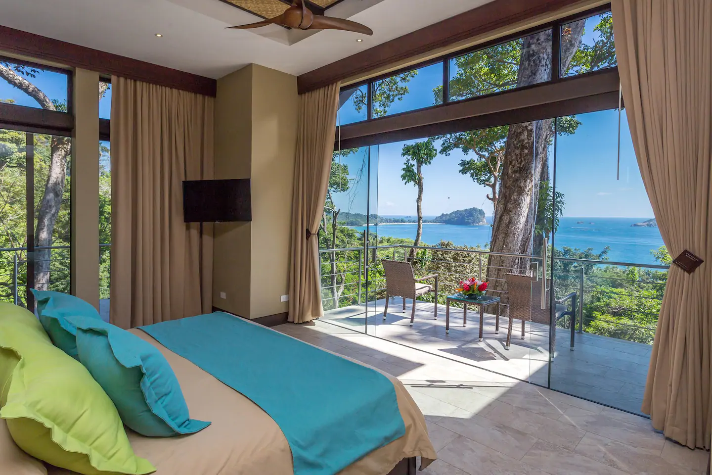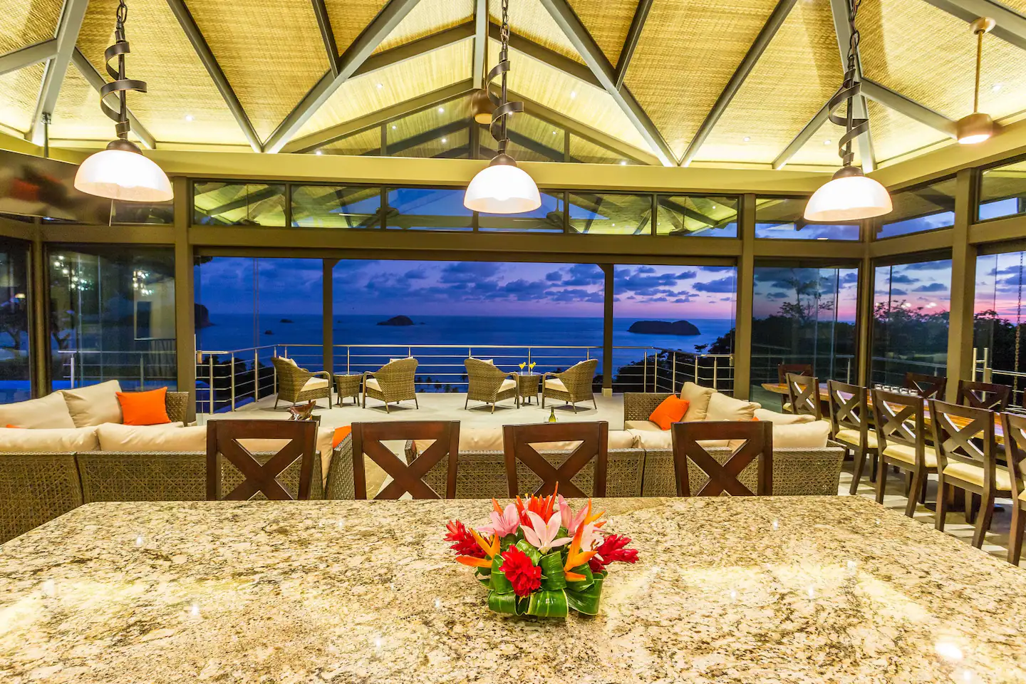 The top floor, a paradise for entertainment, hosts an air-conditioned Great Room with a chef’s kitchen and a stunning balcony overlooking the 180-degree ocean vistas. Immerse in the infinity-edge pool, or hold your nuptial reception by the BBQ grill, bar, and outdoor seating area. Just steps away, the renowned Playa Espadilla offers tropical bliss for your guests and a Costa Rican tropical wedding experience they will surely enjoy.
