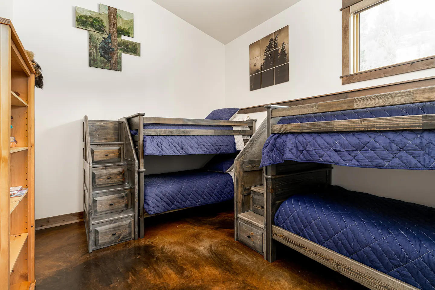It has 5 bedrooms, 4.5 bathrooms, with 4 bunk beds that can sleep adults or kids.