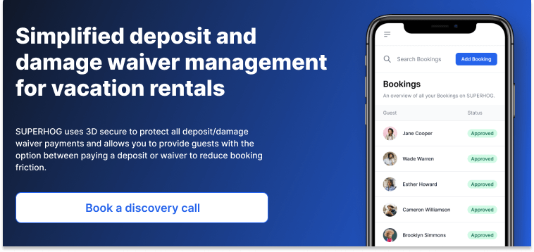 Interested in offering a damage waiver? SUPERHOG’s deposit/damage waiver solution allows you to collect either a deposit or a damage waiver or provide guests with the option of paying one or the other.
