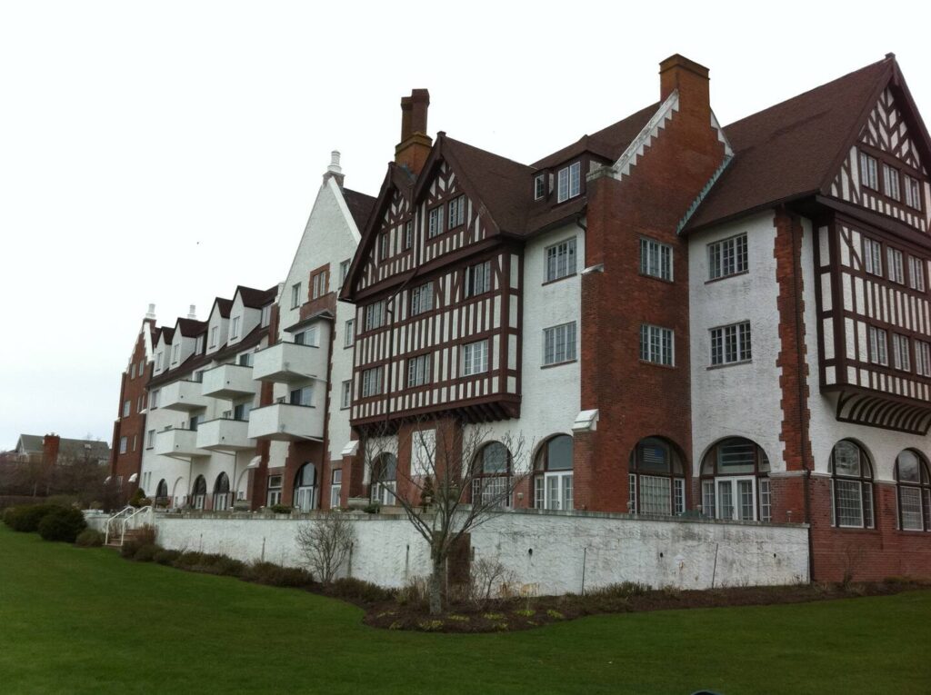 The Montauk Manor was built in 1929 by Carl Fisher. It is a historical landmark built in the Tudor style. It has 140 condominium units. It also has a magnificent lobby with a fireplace and lots of lounging furniture.