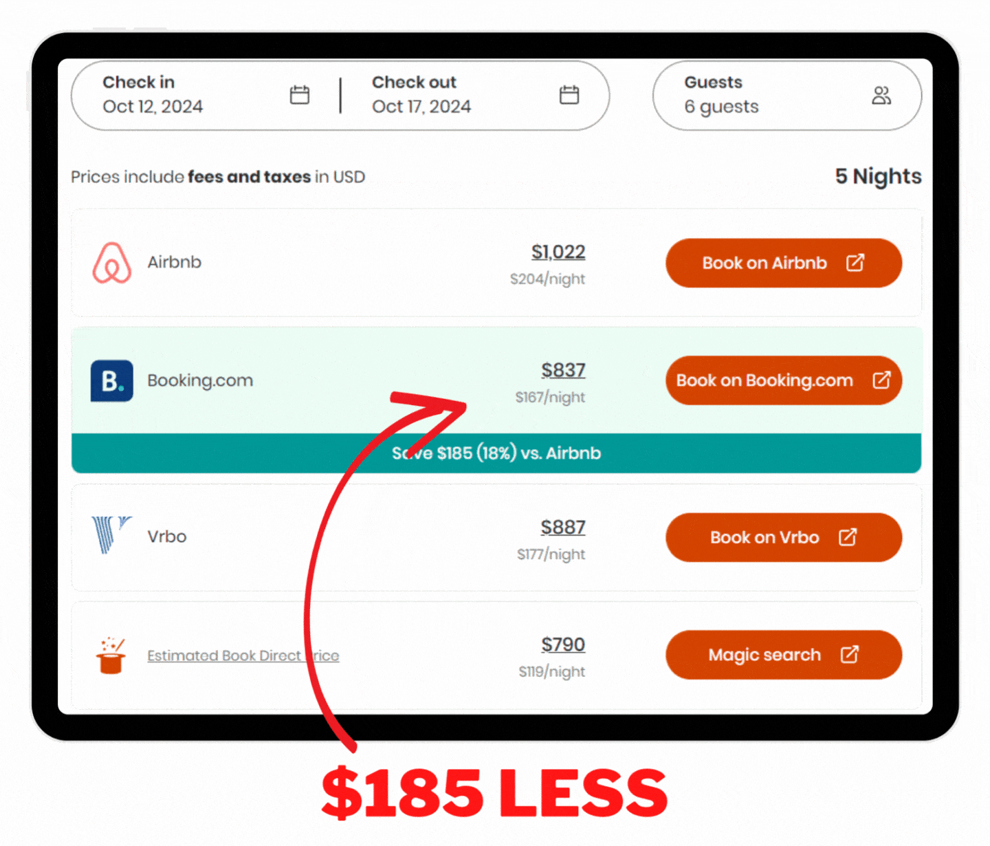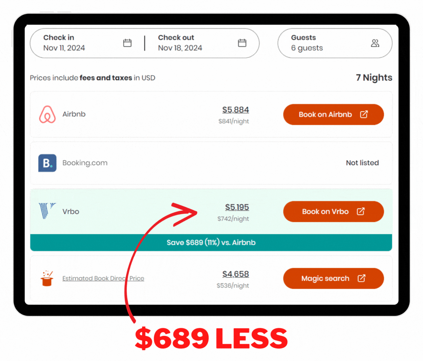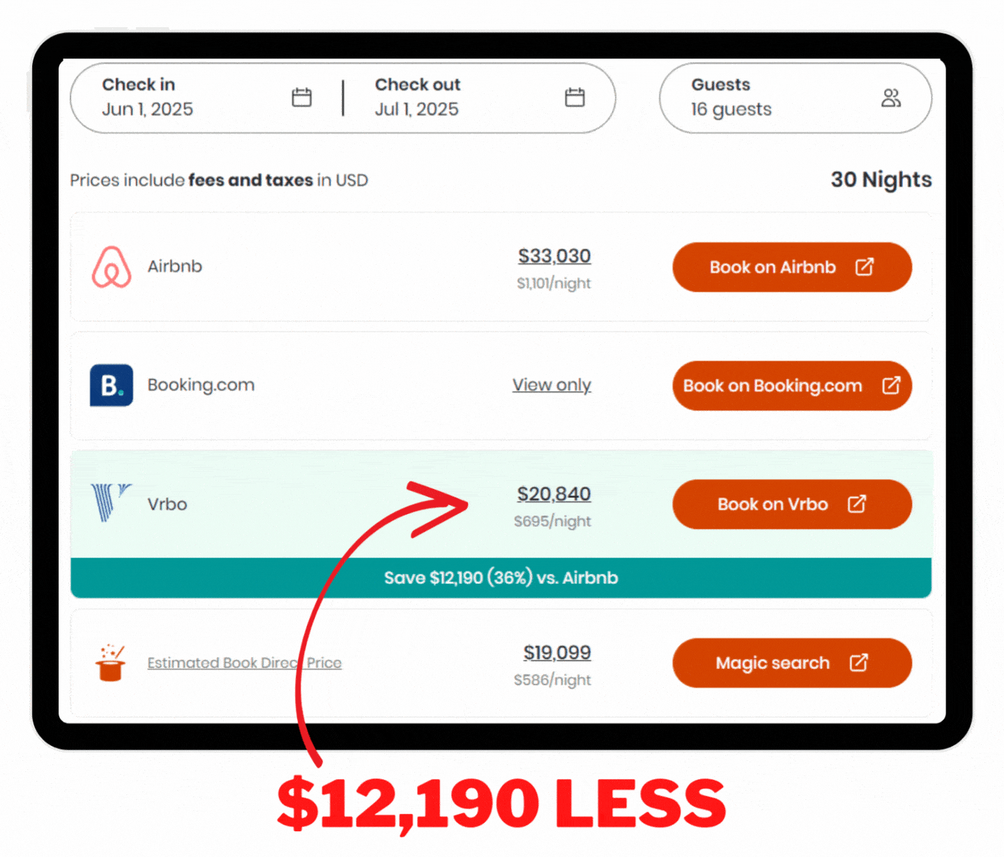 I was ready to book my spooky Halloween Airbnb, but HiChee helped me save $689 by finding it cheaper on VRBO. More money for ghost tours!