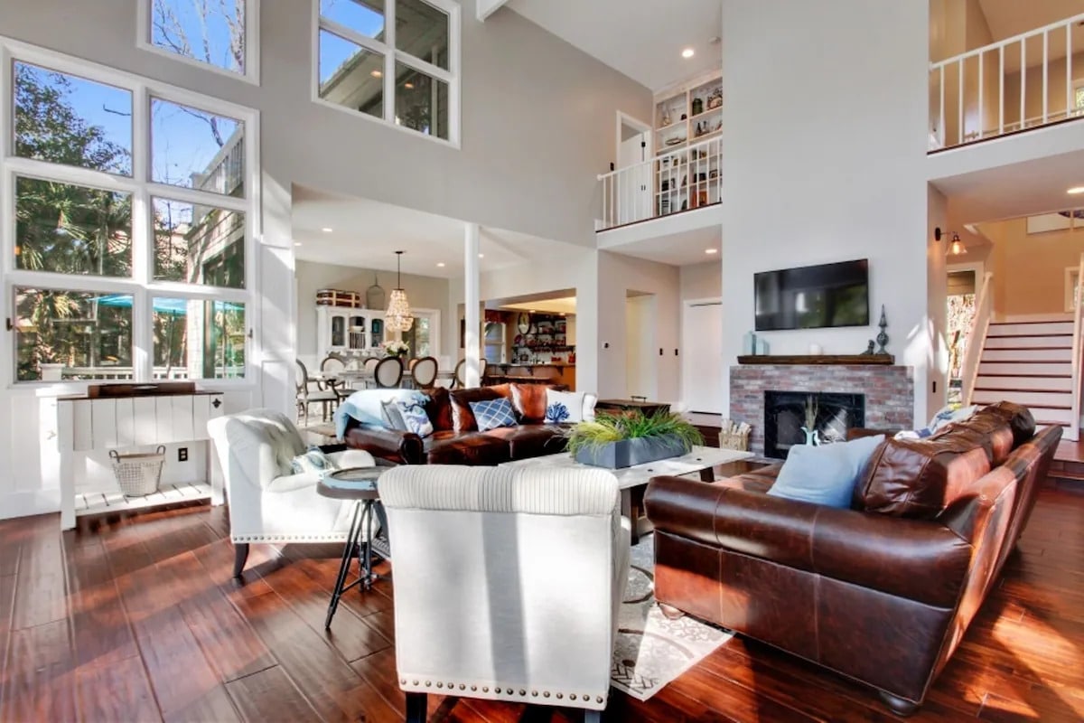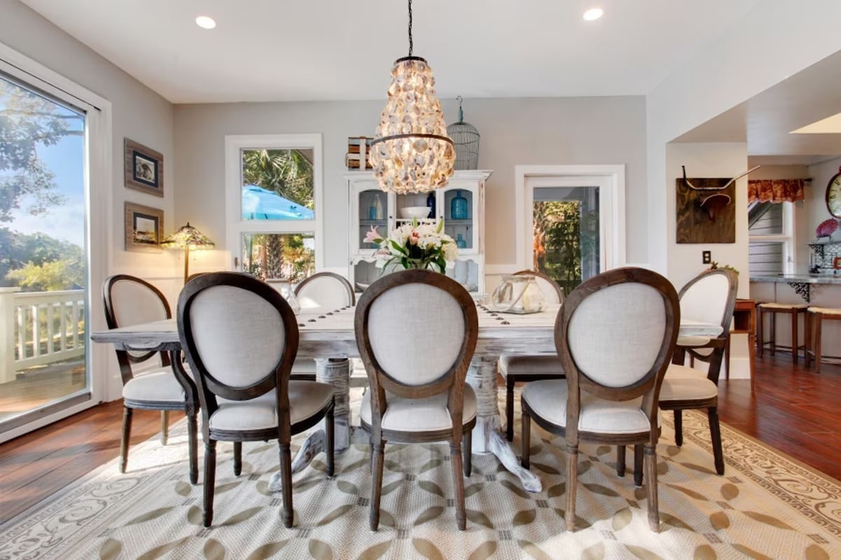 As you approach the home, you’ll be captivated by its charming Southern design, complete with an oak and palm-lined driveway and a sweeping front porch. Inside, you’ll find four spacious bedrooms (including a pirate-themed room for the little buccaneers!), hardwood floors, and a stunning open-concept living space with vaulted ceilings and massive windows that let the island’s natural beauty seep into every corner.