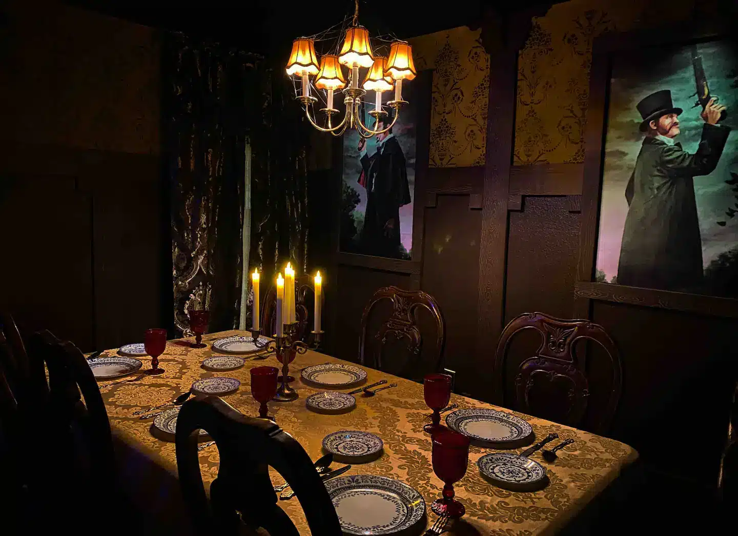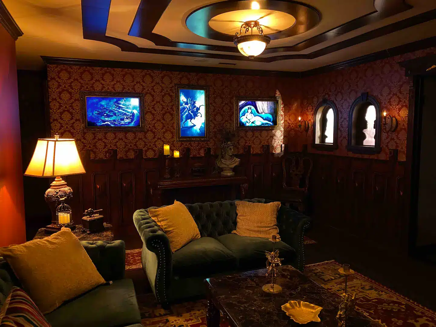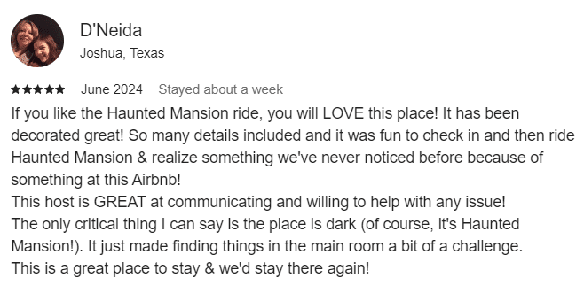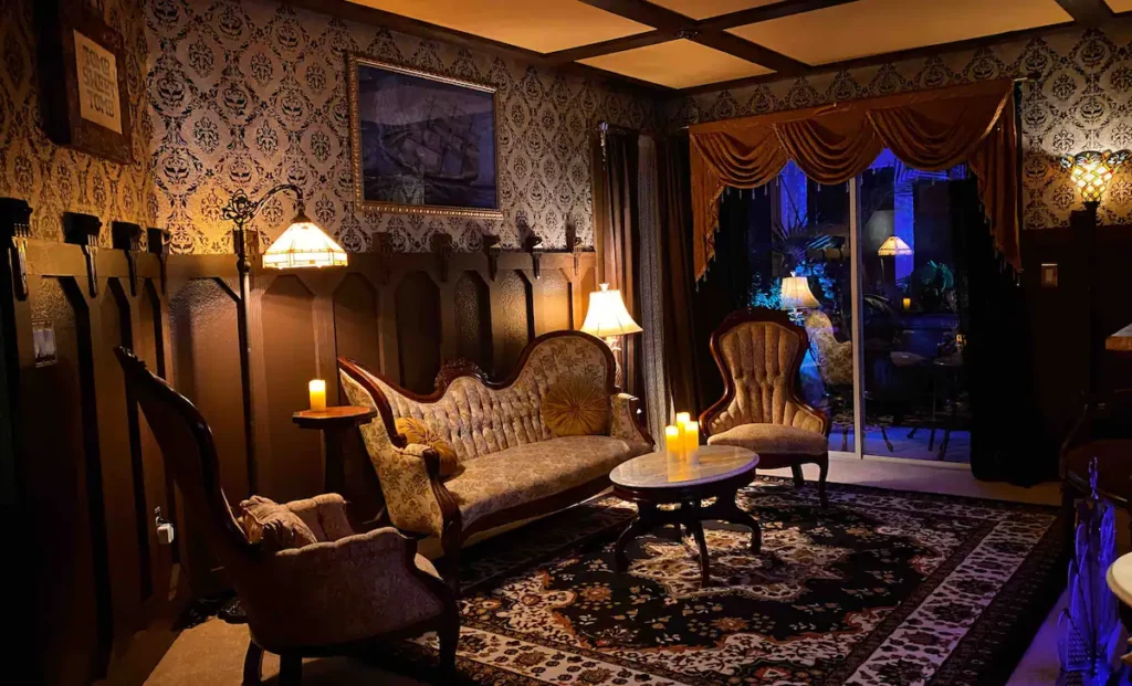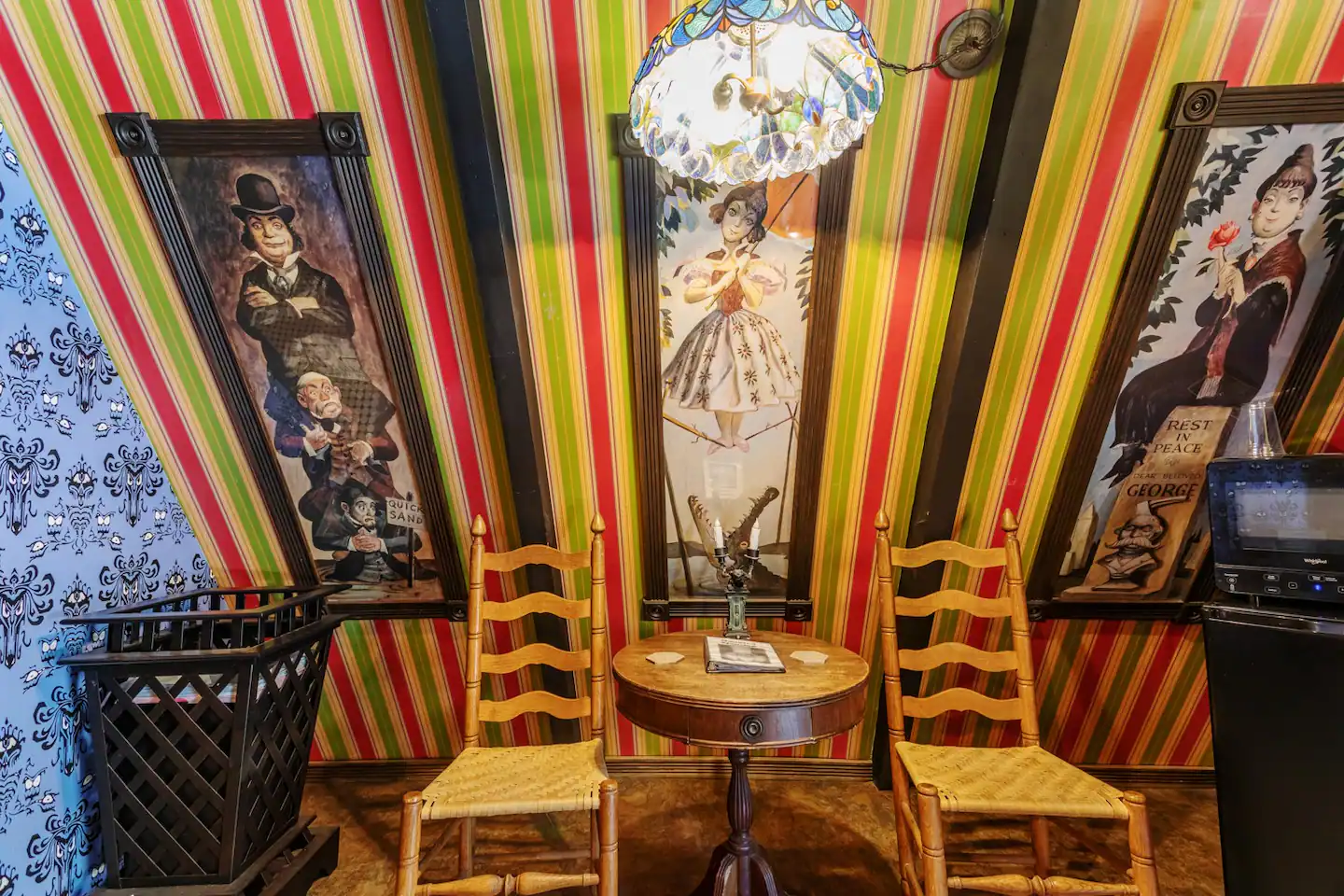 For our bonus property, here’s Ghostly Retreat, where the world of the living fades away, and Disney’s Haunted Mansion comes to life in this immersive, spine-chilling experience. Perfect for a Halloween getaway, this eerie abode is decked out with Haunted Mansion replicas, ghostly illusions, and spooky sights and sounds that will transport you straight into the heart of a horror film—think The Haunted Mansion meets The Nightmare Before Christmas.