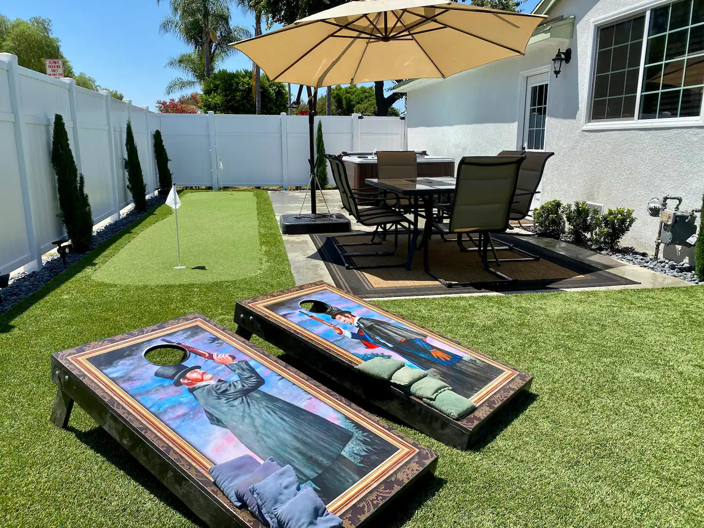 The backyard is a Halloween lover’s dream, with artificial turf, Cornhole, a putting green, BBQ, and a 6-person Jacuzzi to soak away your fears. Just in time for the holidays, the house transforms on November 8th into a Nightmare Holidays wonderland, blending spooky and festive vibes in a way that only the Haunted Mansion can. With all the chills and thrills at your fingertips, this ghoulishly delightful retreat is perfect for those who dare to experience the darker side of Disney!