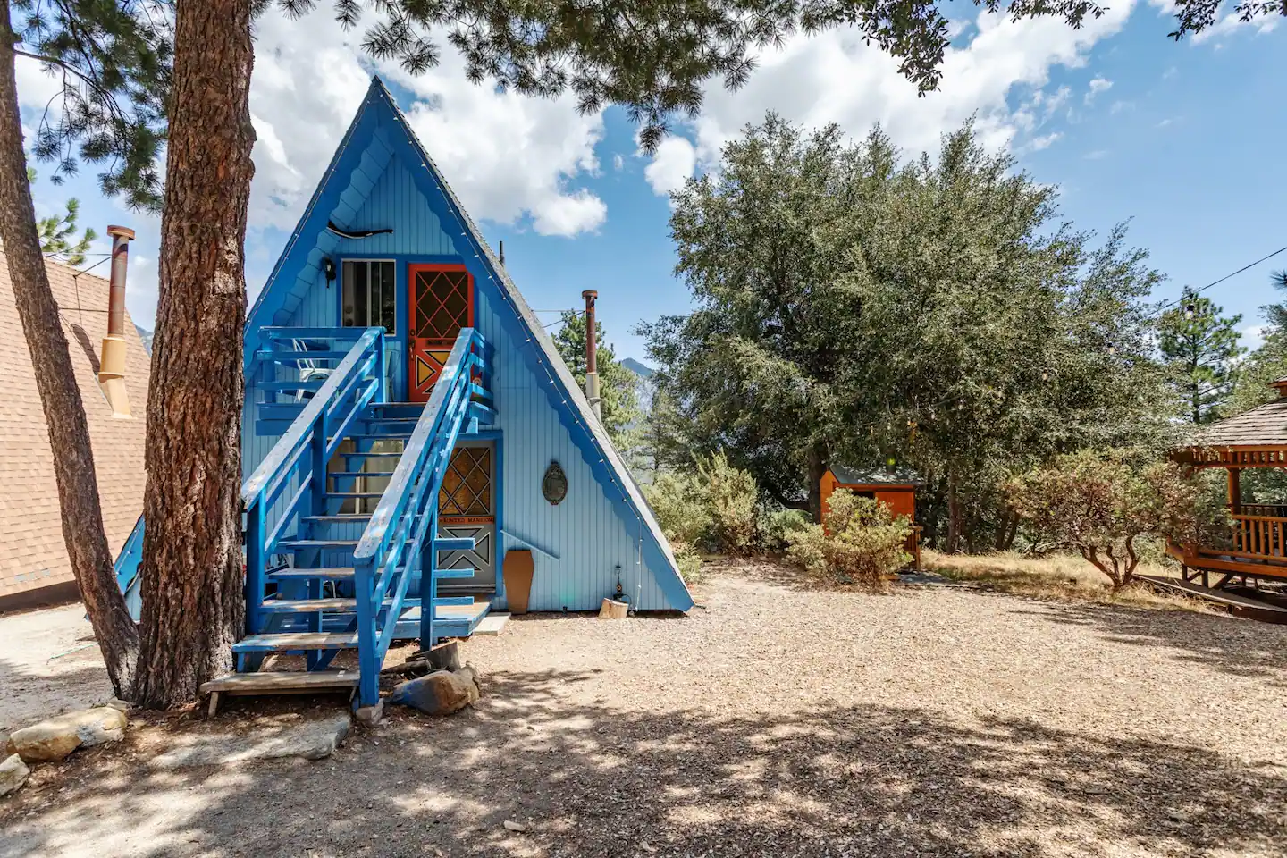 The Dita is one of 10 rooms on the Hicksville Pines property. Hicksville Pines is on over 2 ½ acres of pine tree covered land in Idyllwild, California. Besides the beauty of being in the forest the property has a game room with multiple arcade games, a jukebox, a 70+ inch TV, darts, hockey, shuffleboard and a big curved sofa. There is also an outdoor hot tub under the trees, a peaceful gazebo, a scandinavian grill house to build a fire in during the snowy winter months and an outdoor kitchen with a full sized fridge, a charcoal grill and a sink with a prep station. The property amenities are shared with the other guests on the property. There are also two resident cats that live on the property named Norma and Ed.