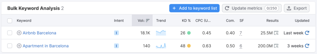 That’s a good point, but Airbnb Barcelona was searched for 129 times more than Apartment in Barcelona, last month. 18.1k to 140.